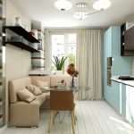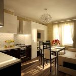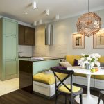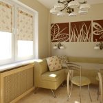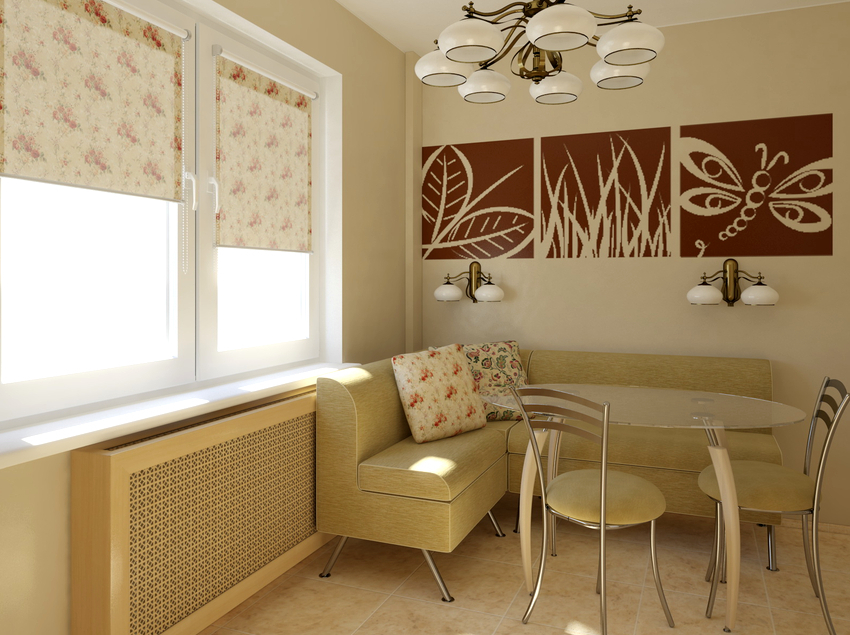 הרהיטים המיועדים לאזור הבילוי אינם קשורים כל כך לתפאורת המטבח. חומר הריפוד יכול להיות כל דבר - מבד פשתן פשוט ועד לקטיפה חגיגית.