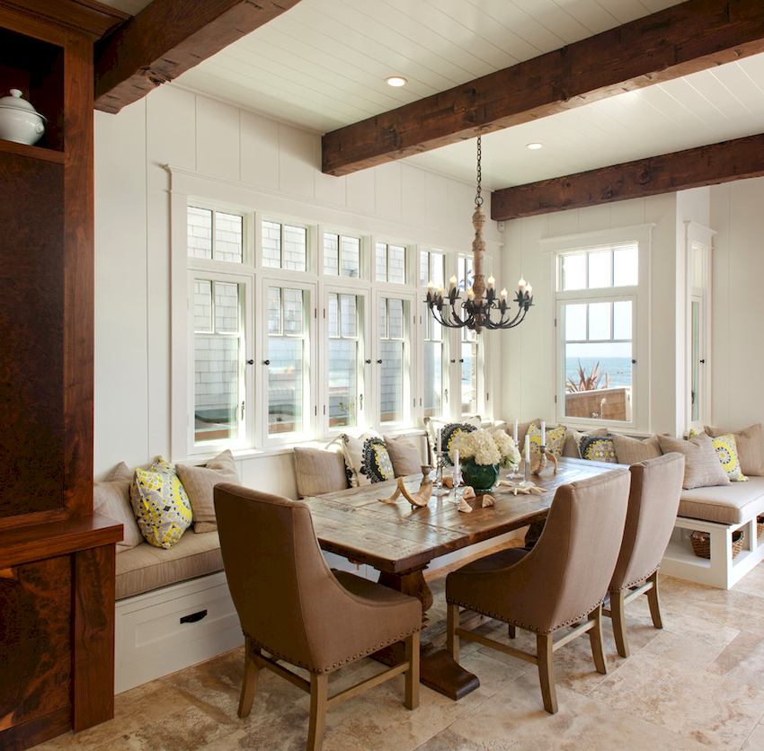 בתים פרטיים מאופיינים בזיגוג פנורמי. קשה לדמיין מקום טוב יותר לפינת אוכל עם ספה מאשר לפינה עם חלון גדול על הקיר. הנוף והאור הטבעי הופכים את זמן הארוחה שלך למהנה ומרגיע.