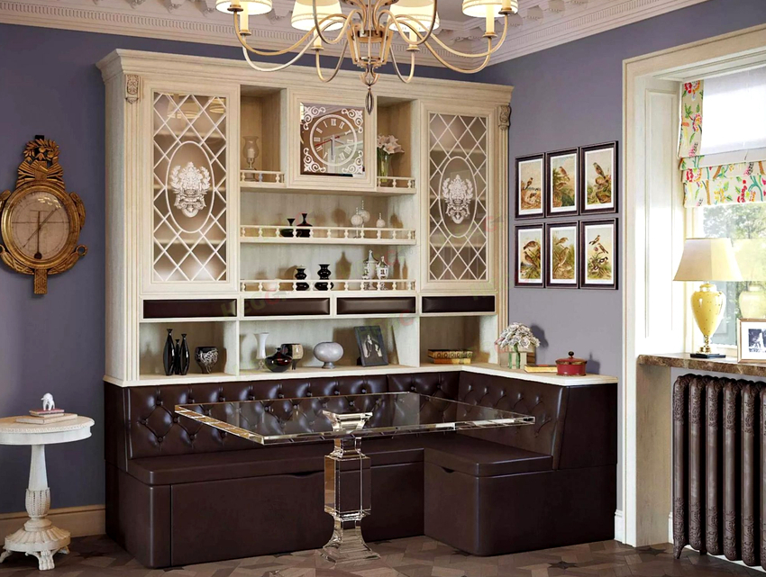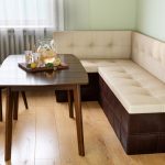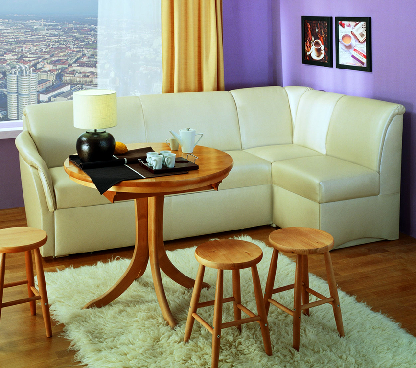 בעלי דירות עם שטח מוגבל צריכים לחשוב על רכישת ספה פינתית קטנה למטבח בעיצוב קלאסי. לעתים קרובות, דגמים אלה נמכרים עם שולחן ומספר שרפרפים.