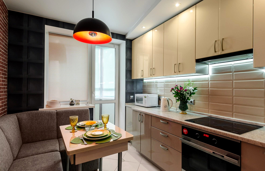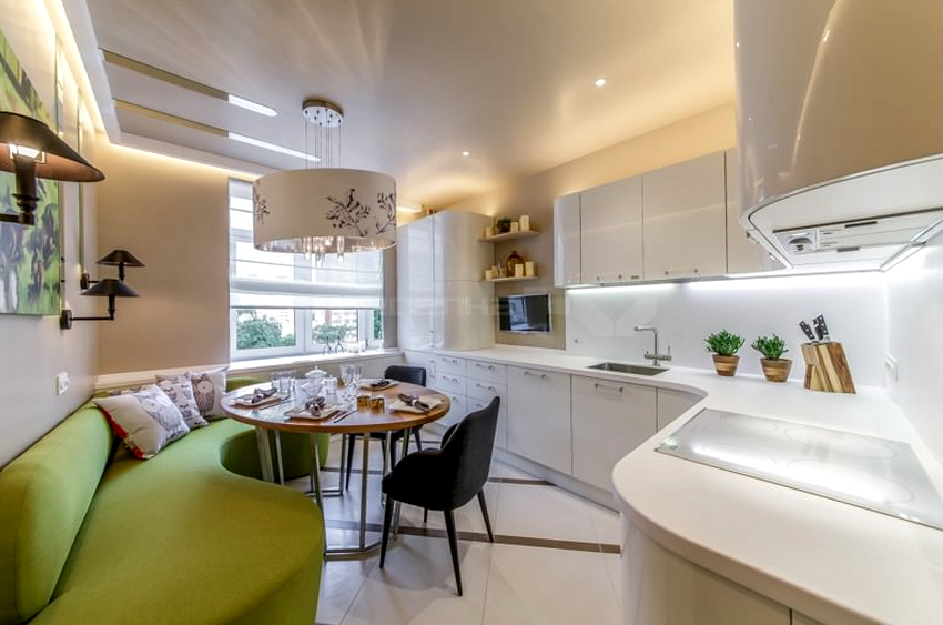 עצה מועילה! אי ייראה לא נעים בפנים המטבח, אותו משלימה ספה פינתית חצי עגולה.