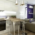 מול אזור העבודה ניתן להתקין ספה ללא משענות. עיצוב כזה יספק חופש פעולה מבלי להגביל את תנועתם של אנשים שיושבים לשולחן או קמים מאחוריו. במקרה זה, הספה תהיה האופציה המוצלחת ביותר. בדרך כלל זוג שרפרפים מרופדים כלולים בדגמים הסטנדרטיים. הודות לגודלו הקומפקטי, ניתן להתקין עיצוב זה בכל פינה פנויה במטבח.