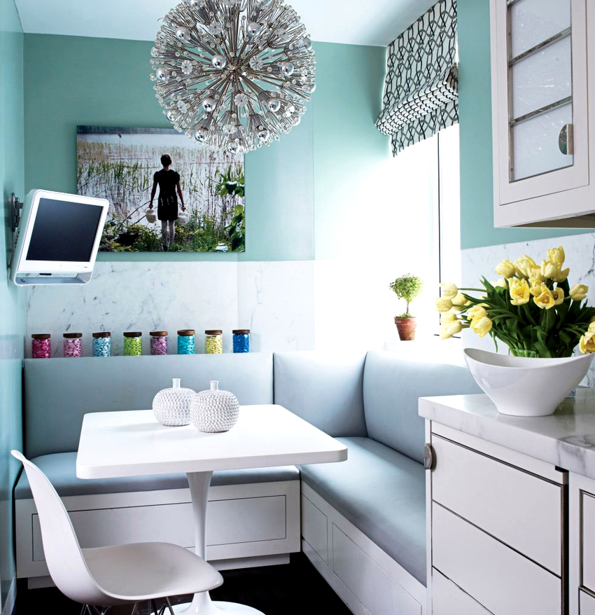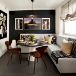 לאחר שבחרנו דגם מתאים של ספה פינתית למטבח והמקום האופטימלי להצבה, כל שנותר הוא לעצב נכון את האזור הזה. קיר בהיר מהווה רקע נהדר. כדי להתמקד בספה, אתה יכול להשתמש לא רק בצבע, אלא גם בטפטים עם פנורמה יפה, קישוטים או חיקוי מציאותי של לבנים. ספות פינתיות תורמות ליצירת פנים נעימות ופרקטיות במטבח.