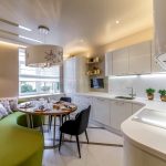 עצה שימושית! ריהוט מודרני לטווח בינוני נוטה להיות בעל מראה ניטרלי ומאופק שאינו ראוי לציון. כדי להשיג אחדות סגנונית עם עיצוב המטבח, תוכלו לבחור את צבע הריפוד או המרקם הנכון.