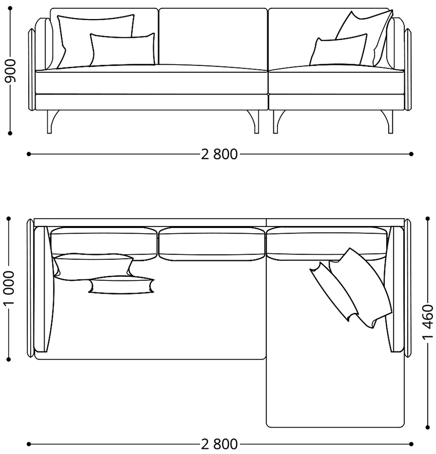 עיצובים בהתאמה אישית: ציורים של ספות פינתיות עם מידות