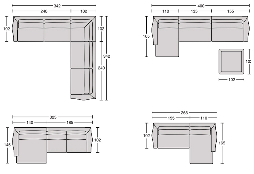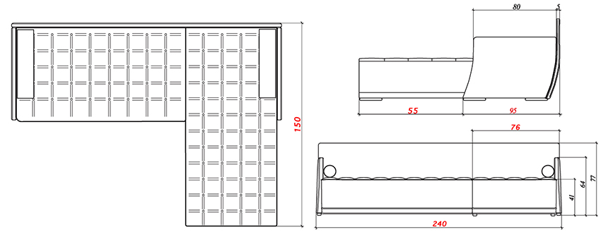 על פי התקן, מידות הספה הפינתית הן כדלקמן: