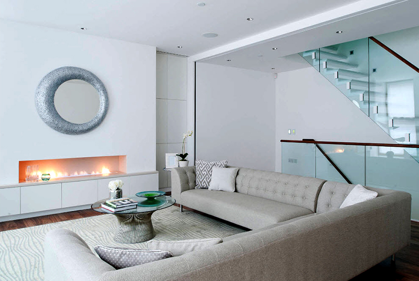 הצבת רהיטים באלכסון מאפשרת לך להחיות את המראה של סלון ללא פנים. העיקר שהספה לא יוצרת מכשולים לתנועת אנשים. בחדרי מגורים עם אח מתמקדים באלמנט זה. במקרה זה, המקום להתקנת הספה הפינתית נבחר בקפידה רבה. ניתן להשתמש ברהיטים לאיזור חדר וליצירת אזור אח, או להתנגד למקור אש על ידי התקנתו על קיר ממול.