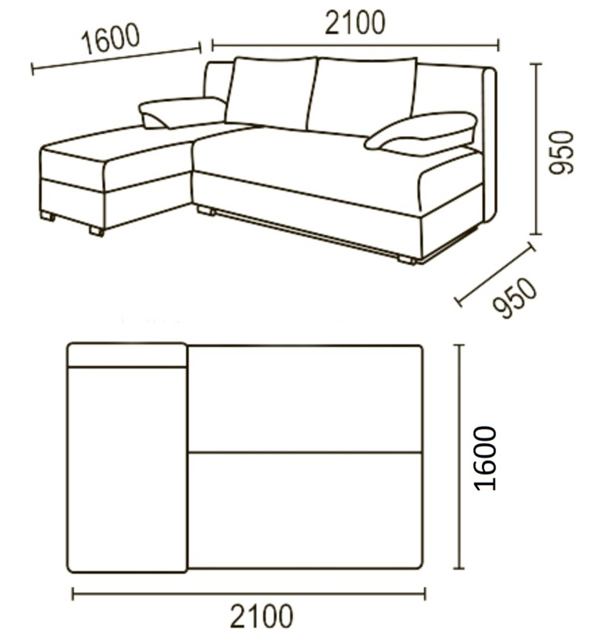 | מידות של ספות פינתיות | אזור שינה, מ | מחיר, לשפשף. |