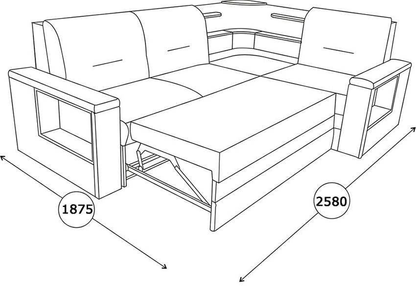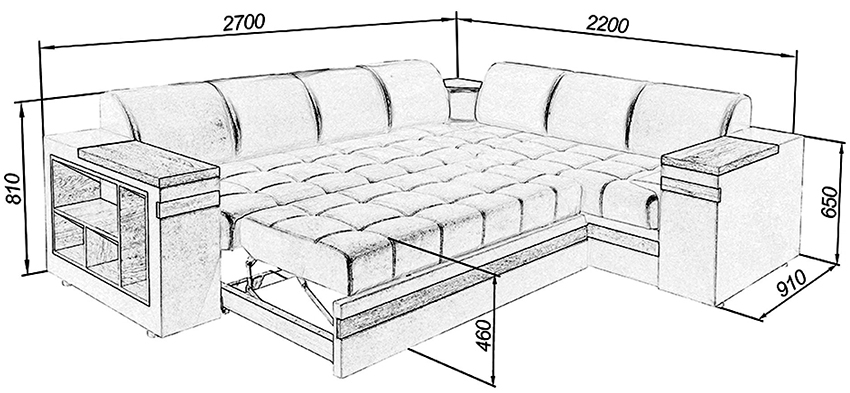 עבור דרגש בספה פינתית גדולה, גודל 2000x1400 מ"מ נחשב למינימום, והמידות המרביות של אזור השינה הן 2000x3000 מ"מ.