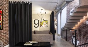 זו אפשרות נפוצה לחיבור וילונות לווילונות מתחת לתקרת מתיחה, הדורשת פתיחה וסגירה קפדניים של הווילונות כדי לא לפגוע בשלמות מבנה המתיחה.
