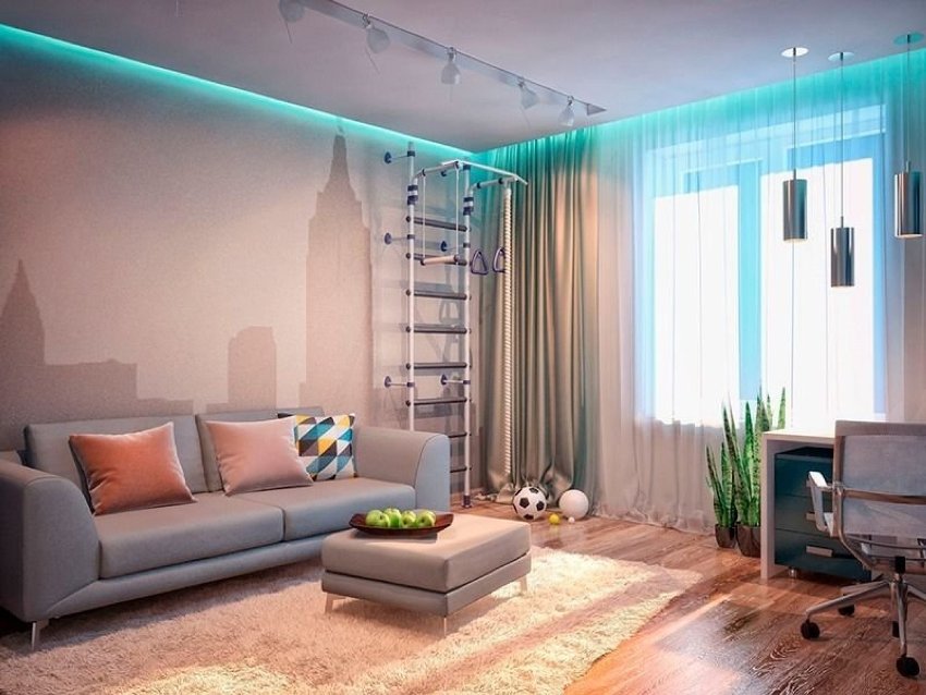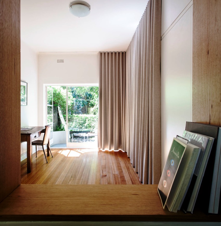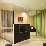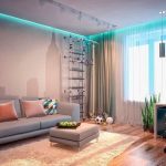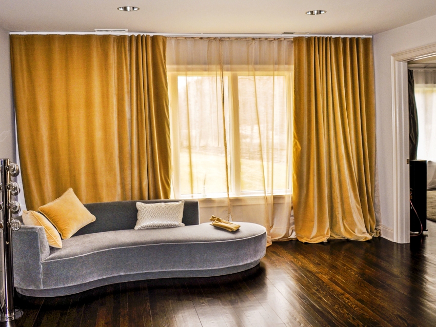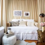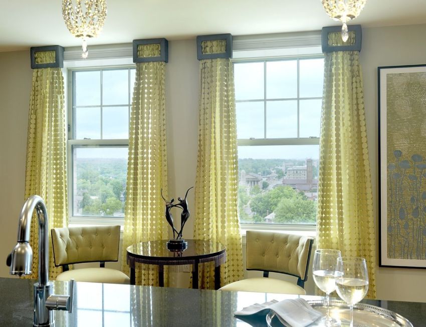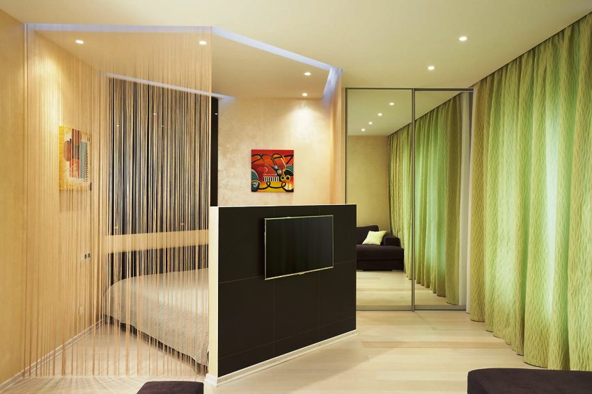 כך נוצרת גומחה בין הקיר לתקרה להתקנה הנסתרת של הווילון. אפשרות זו מספקת מראה יוצא דופן ומקורי של קישוט החלונות, מבהיר את המצב ומוסיף נפח לחלל.