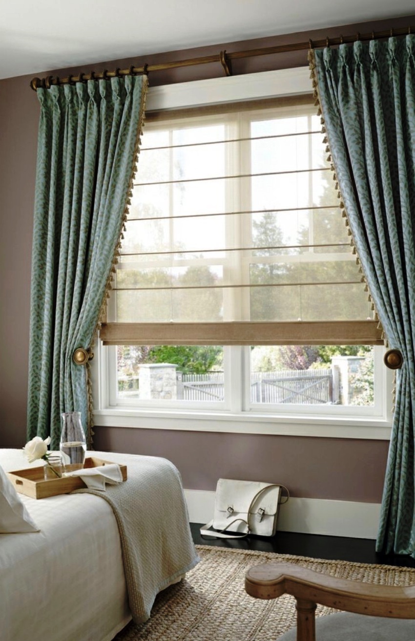 חָשׁוּב! ניתן לתלות תריסים רומאיים על וילונות קיר, אשר יבטיחו התאמה נוחה של הבד לחלון.