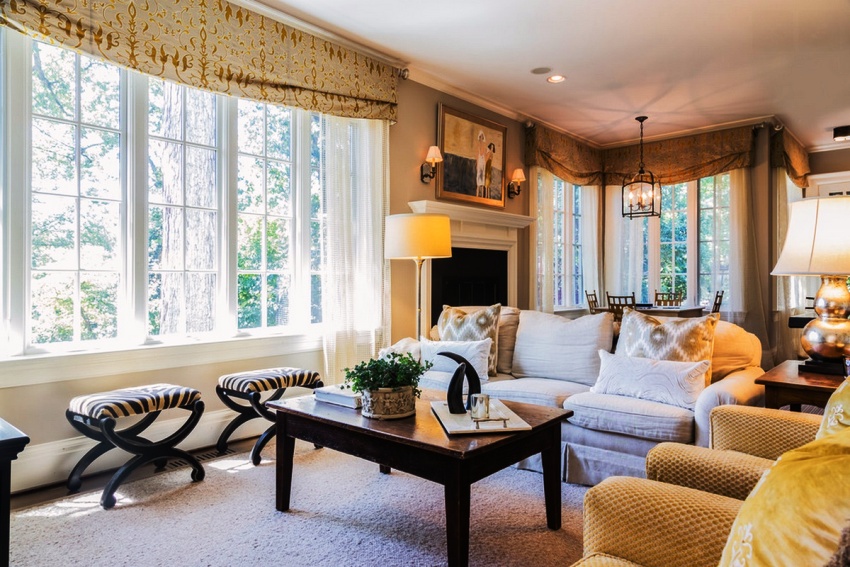 חָשׁוּב! מבנים כאלה הם בעלי מראה מסיבי, שייראה מגוחך כאשר מקשטים חלון שנפתח בחדר קטן.
