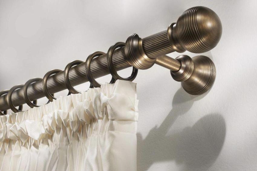 חָשׁוּב! הכרכוב העגול מספק דרישות מסוימות לבחירת מחברים לווילונות, צבע ועיצוב דקורטיבי של הווילונות, שאמורים להיות בהרמוניה עם המוט והקצות.