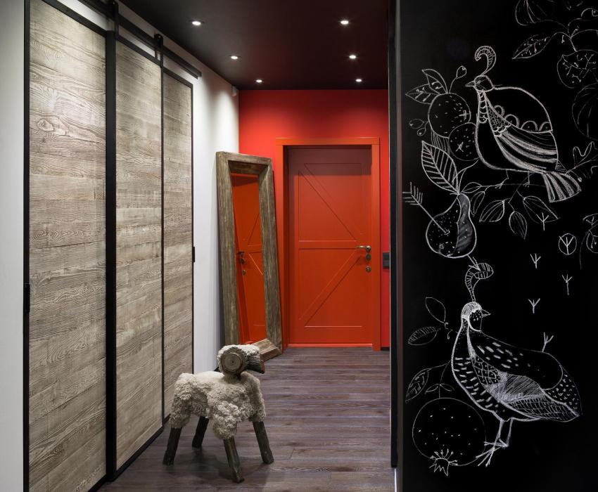 פנים במסדרון ועיצוב דלת הכניסה חייב להתאים לסגנון הכללי של הדירה