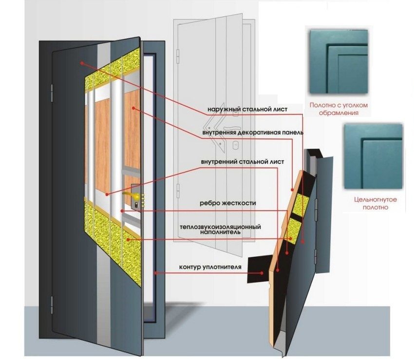 כאשר מחליטים באיזו דלת כניסה לבחור לדירה, עליכם לשים לב היטב לתוכן הפנימי שלה. כל עלה דלת איכותי חייב להיות בעל מבנה פנימי חתך. גבולות החלקים מוצגים בצורה של קשיחות פלדה. בגרסאות זולות, תפקידם מנוגן על ידי אקורדיון קרטון. דלת כזו קלה מאוד, ובחור מתחת למנעול רואים קרטון וריקנות.