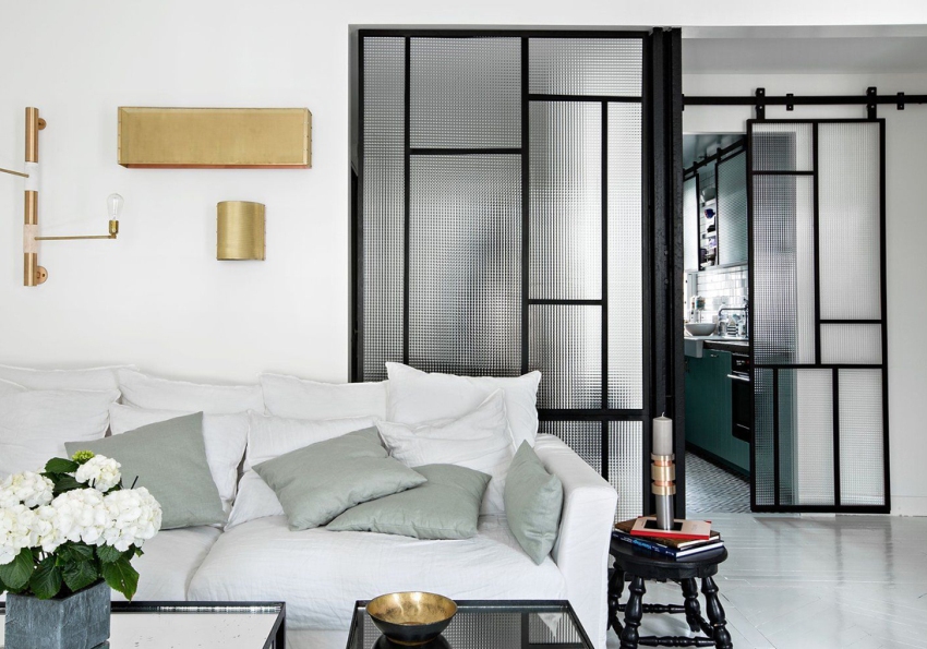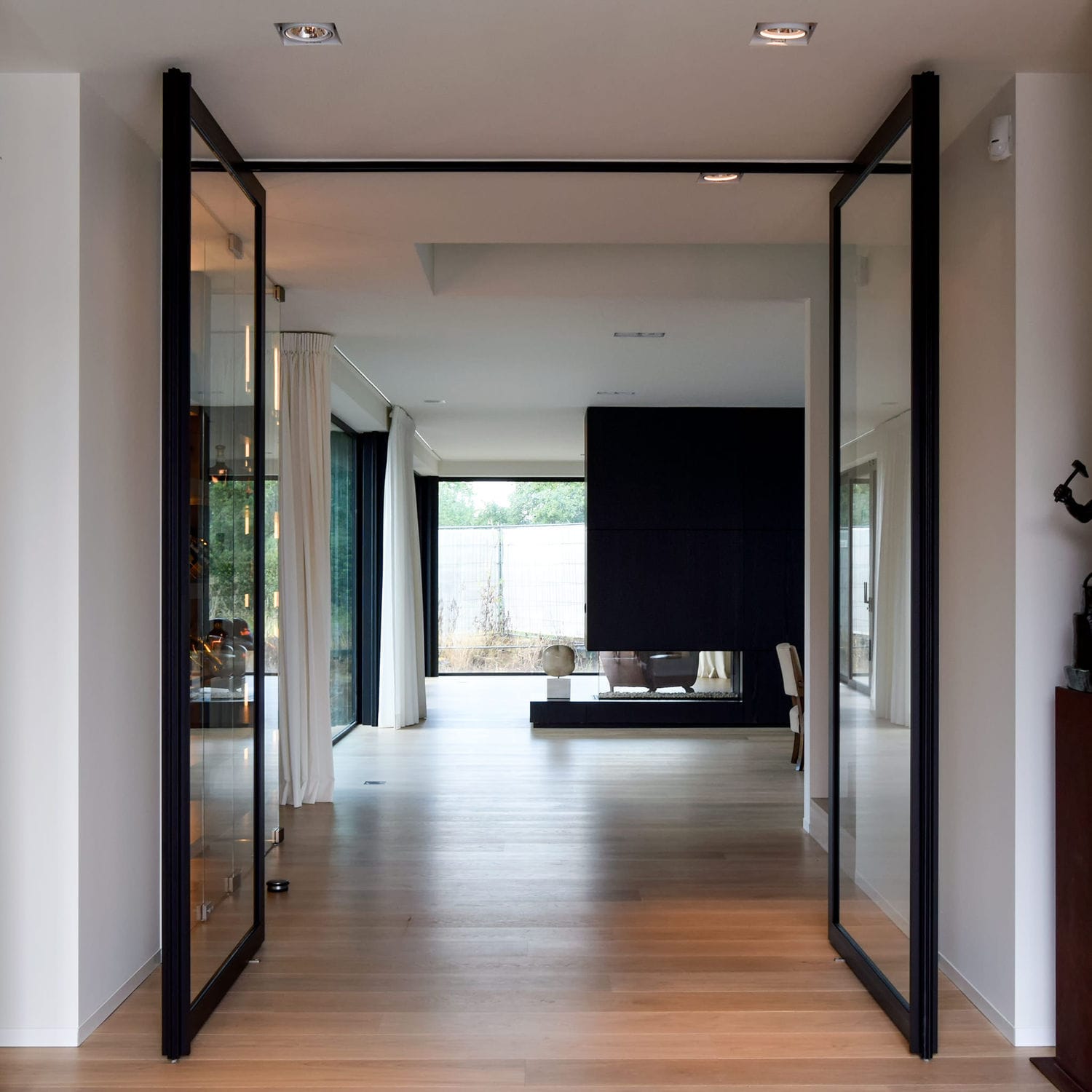 דלת פנים מזכוכית כמבטא מסוגנן בחלל פנים מודרני