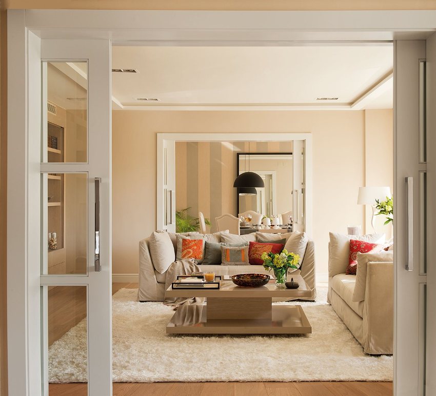 ניתן להתקין את אותן הדלתות בכל הדירה. אפשרות זו רלוונטית במיוחד עבור חדרים שנכנסים למסדרון אחד. עיצוב הדלתות צריך להיות בהרמוניה עם הסגנון הפנימי של האולם, ובכך לשמור על שלמות תפיסת החלל. אפשרות רב-תכליתית היא דלתות הזזה פנים מראות שיתאימו לכל כיוון סגנוני של הפנים.