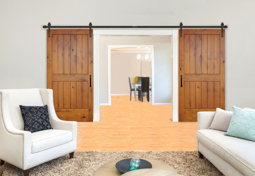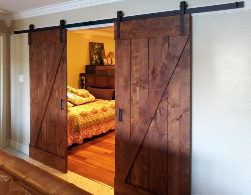 מומלץ להתקין דלת הזזה בת שלושה עלים בפתח רחב שאינו סטנדרטי, שציורי הקנבס נעים לאורך מסילות נפרדות. לעיצוב כזה, ישנן מספר אפשרויות התקנה, המוצגות בבירור בתצלום של דלתות תא פנים.הבד המרכזי יכול לנוע בחופשיות לכיוונים שונים, והצדדים קבועים בצורה נוקשה. או להיפך, החלק המרכזי מותקן לצמיתות, בעוד ששני האחרים נעים בחופשיות לאורך המדריכים.