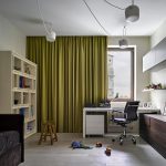 ניתן להשתמש בווילונות פנים כדי להפריד בין חדר העבודה לחדר השינה. הם יעמיקו את חומרת ריהוט העבודה, יהפכו את החדר לנוח יותר ולא יפרו את הזוהר של הסביבה השרופה.