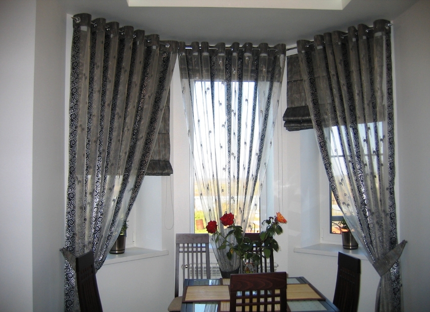 וילונות, המאופיינים בהדפס קטן על הבד, לא צריכים להיות בעלי וילונות מוגזמים, אחרת כל הדפוס פשוט יאבד. אם המוצרים הם מונוכרומטיים, להיפך, ניתן לתלות אותם בעובי כדי ליצור אפקט תלת מימדי. כשמסתכלים בתמונות של וילונות יפים למטבח, אתה יכול לשים לב שלעתים קרובות משתמשים באופציה משולבת מבדים שונים, ובהתחלה הם תולים אור בהיר. טוּל עשויים סינתטיים, בעוד ברקע הם וילונות עשוי מבד טבעי.