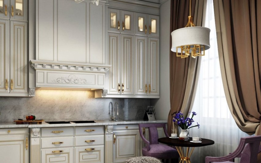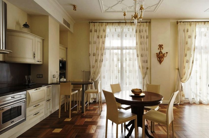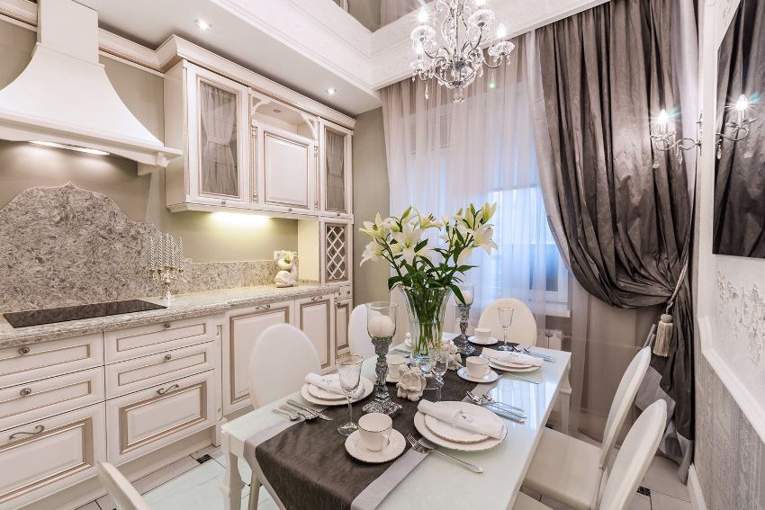 - סגנון מטבח כללי. גורם זה משפיע על צבע, סגנון, אורך ופרמטרים אחרים של המוצר.