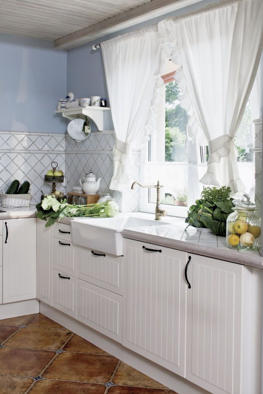 וילונות לבנים במטבח אינם נחשבים פרקטיים, מכיוון שעל רקע לבן ניתן יהיה לראות עקבות של אבק, במיוחד כתמי לכלוך, שומן ולכלוך אחר. אם אין רצון לוותר על לבן במטבח, אז עדיף לתת עדיפות לווילונות בז 'או לגוונים בהירים אחרים.