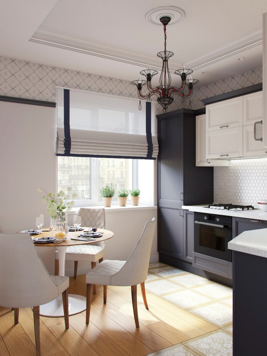 - הצורה והשטח הכללי של המטבח. בנוסף לוקחים בחשבון את רוחב מסגרת החלון וגובה התקרות.