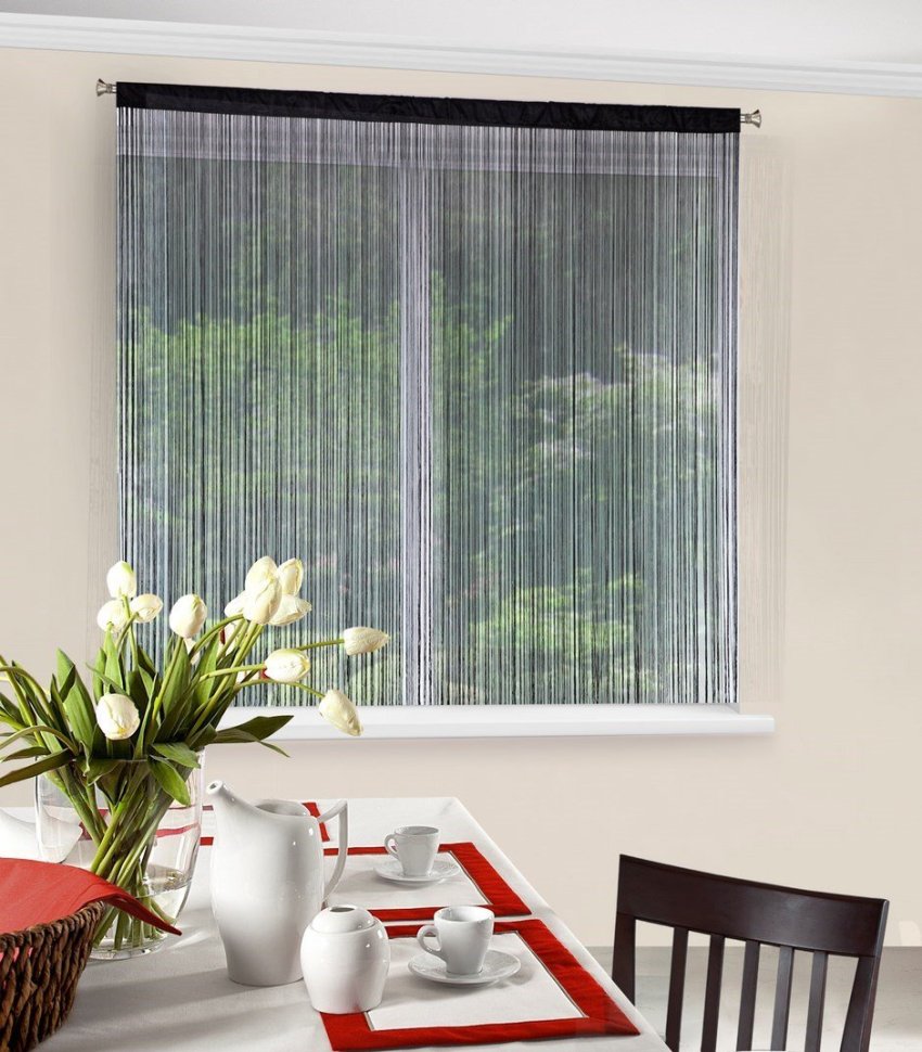 וילונות חוט (מוסלין) הופיעו ברוסיה לפני מספר שנים, אם כי הם שימשו במזרח התיכון מזה זמן רב. מוצרי חוט הם וילון המורכב מחוטים נפרדים. מעצבי פנים מדללים לעיתים קרובות את מראה הווילונות במגוון חרוזים, נוצות, חרוזים. Kiseya נחשב לאופציה טובה עבור וילונות למטבח קטן ולחדרים גדולים.