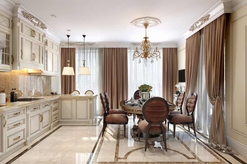 המטבח נחשב בצדק למקום בו ההסתברות לזיהום פני השטח היא הגבוהה ביותר, מכיוון שהוא לא רק שם אוכל מבושל, אלא גם נצרך. במטבחים רבים שולחן האוכל ממוקם ליד החלון כדי לספק אור טבעי בשפע. לכן, הדבר הראשון שצריך להתחיל בבחירת וילונות לחדר האוכל והמטבח הוא הפרקטיות.במקרה זה העדיפות תהיה וילונות שאינם דוהים, אינם דוהים, עליהם להיות עמידים גם בפני הצטברות אבק, ריחות צד שלישי, פיח ולכלוך.