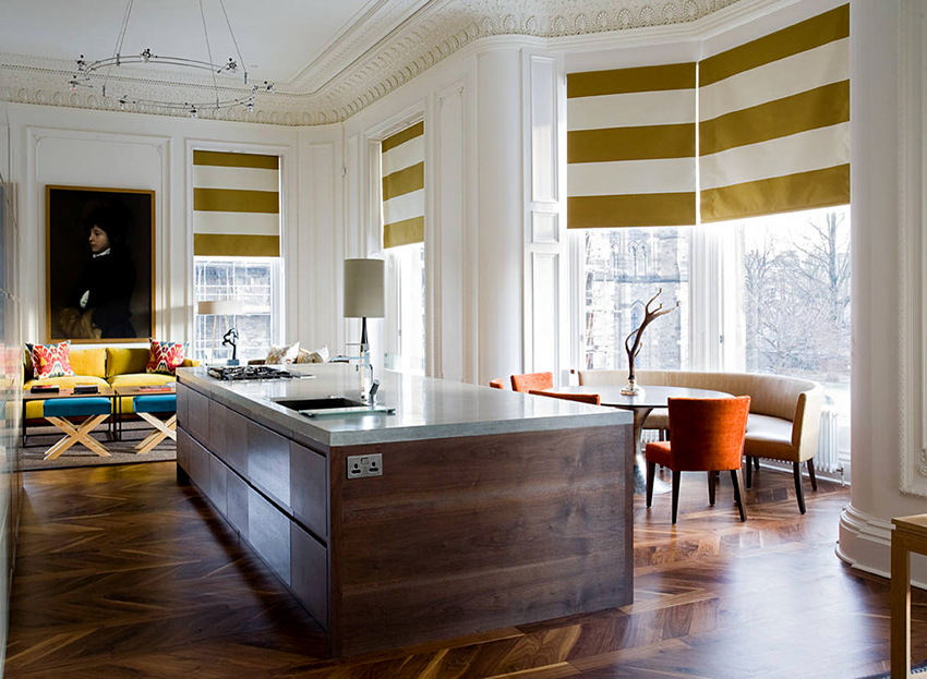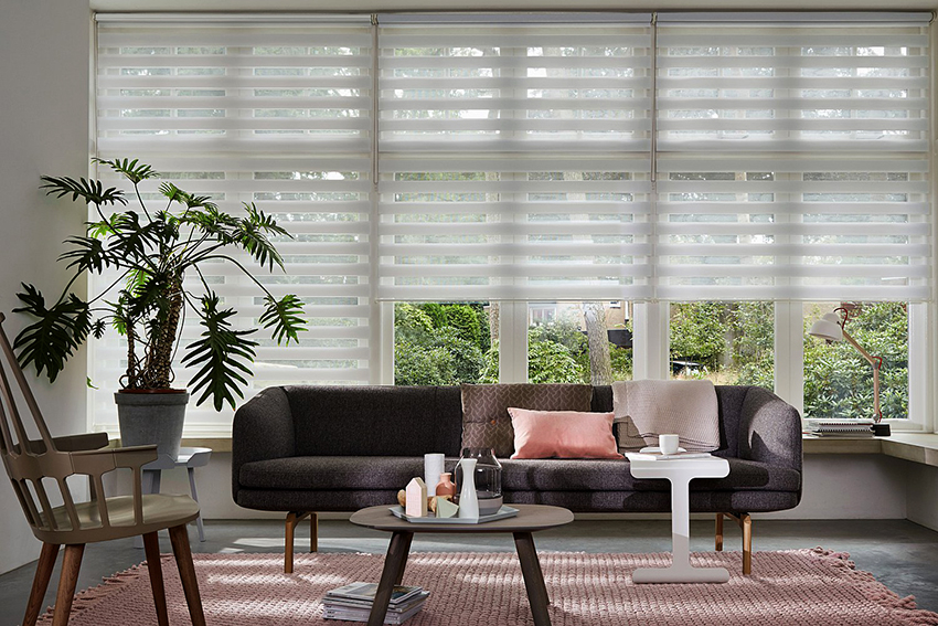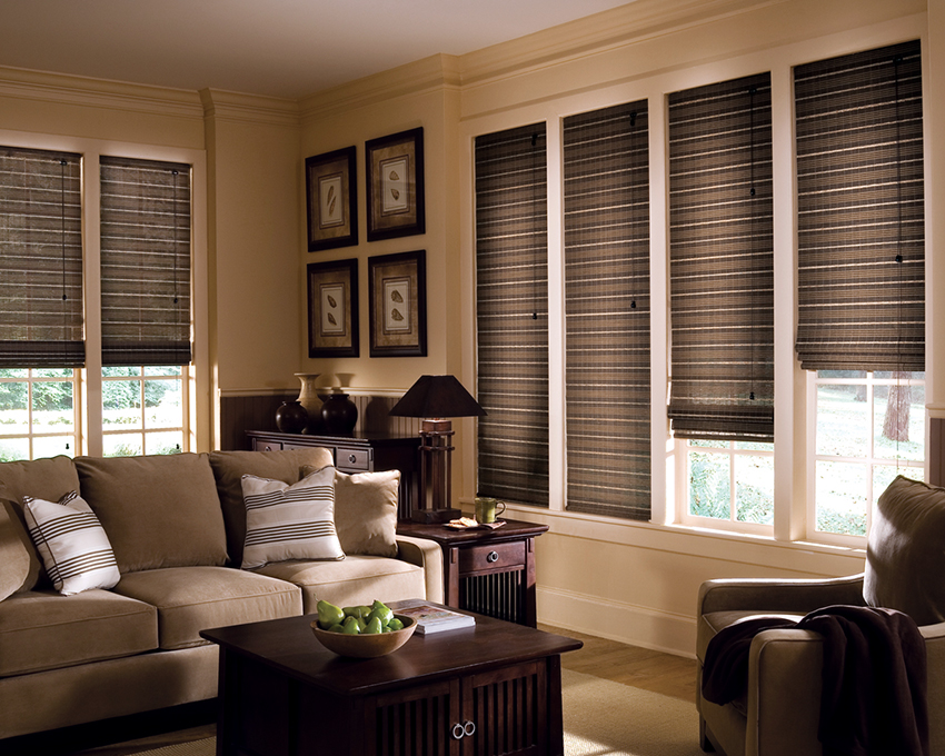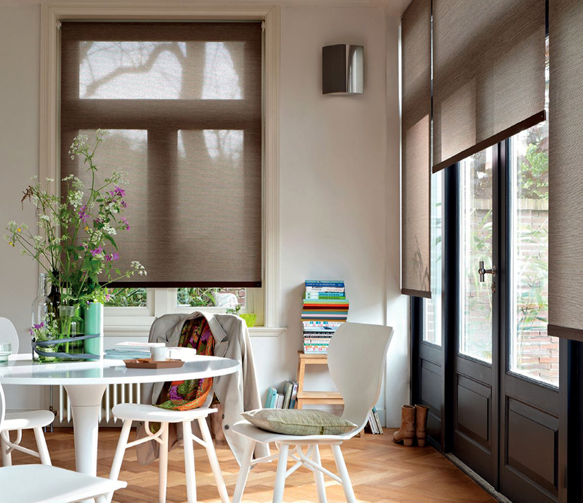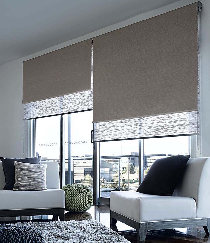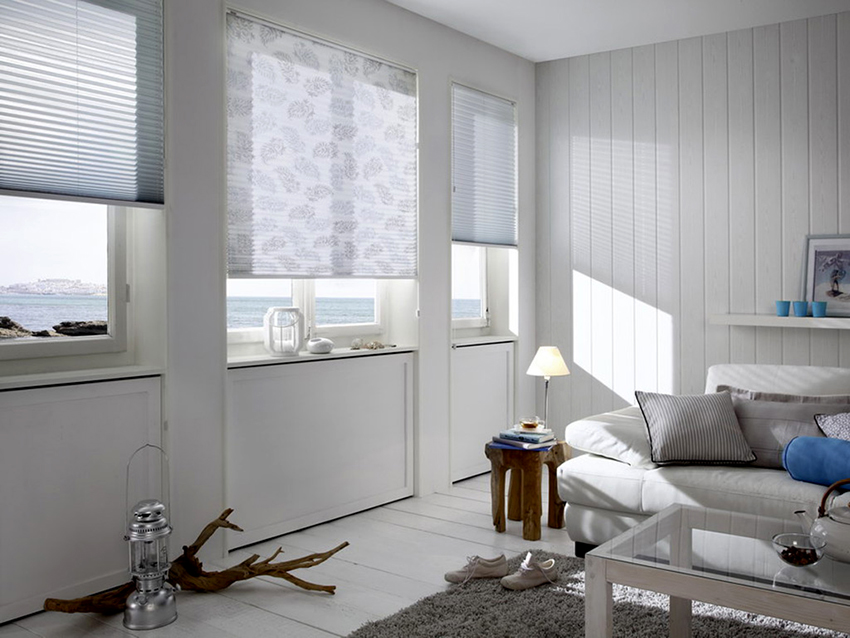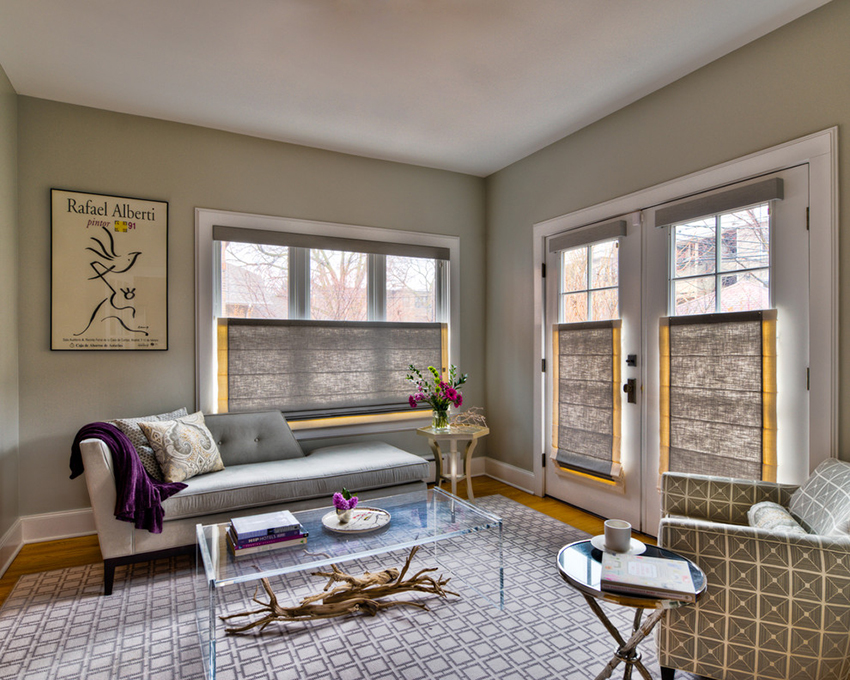תריסים רומאיים באולם: צילומי בדים טבעיים וסינתטיים בפנים