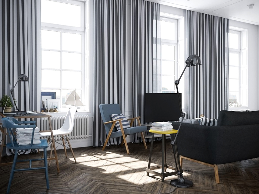 תמונות הוילונות לאולם המעוטרות בכיוון הסקנדינבי המוצגות באתרי האינטרנט מציעות אפשרויות עיצוב שונות. יש לציין כי וילונות אינם משמשים כאלמנט דקורטיבי.