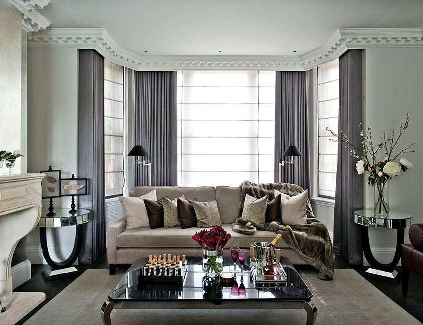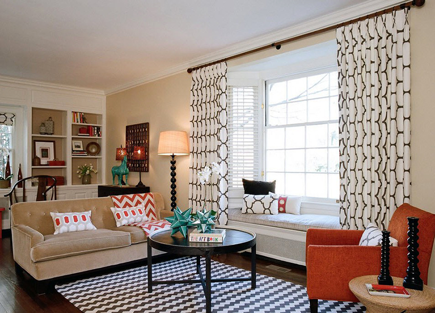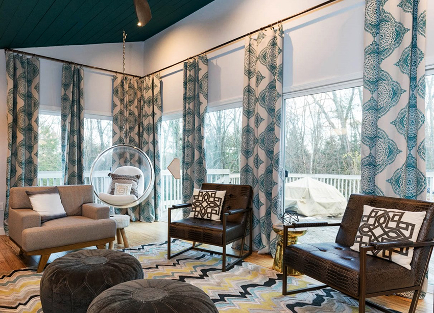 טיפים למעצבים: צילום וילונות לאולם עם חלונות מפרץ