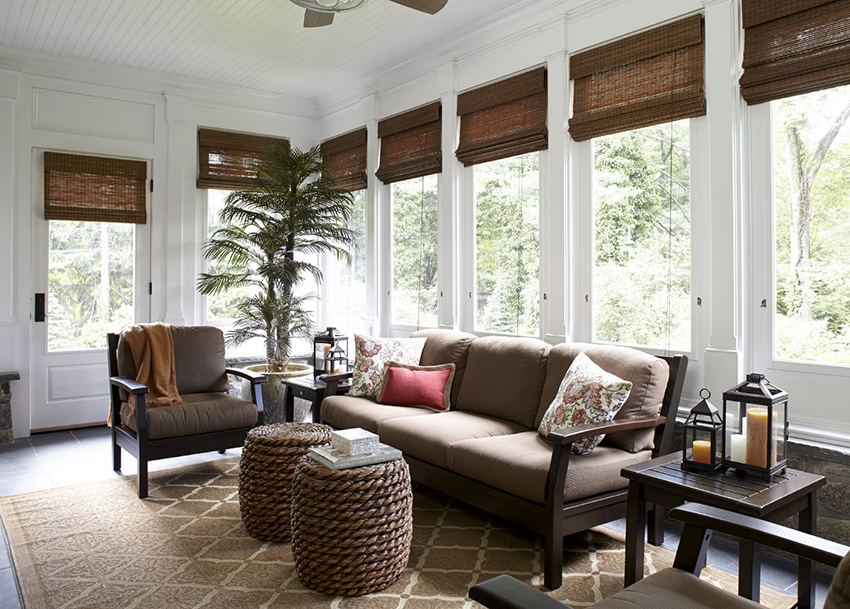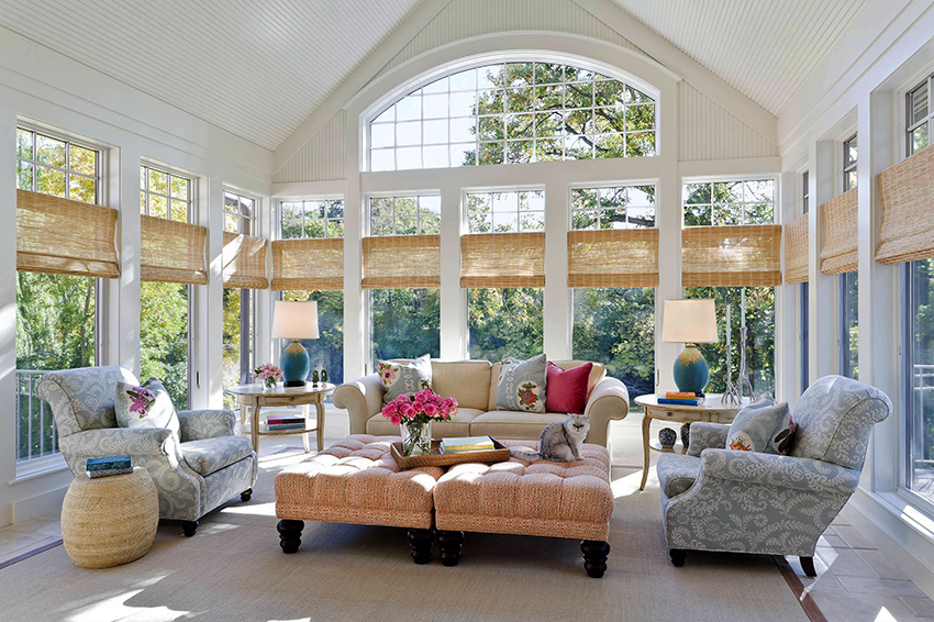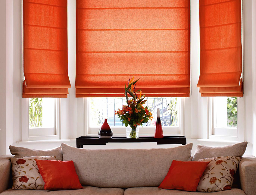 עצה שימושית! לא מומלץ להשתמש בתריסים רומאיים צבעוניים לחלונות פנורמיים. מספר רב של גוונים יכול להרוס את הפנים.