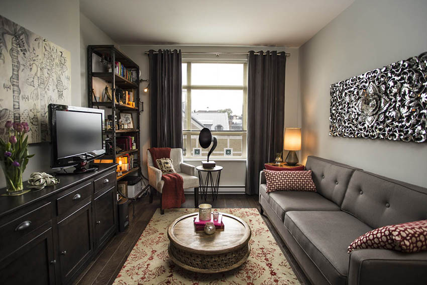 האולם מוגדר בדרך כלל בחדר הגדול ביותר בבית או בדירה. עם זאת, בבניינים בסגנון ישן, אפילו החדר המרווח ביותר יכול להיות קטן. וילונות כבדים בחדר כזה אינם הולמים לחלוטין. אפילו בדים קלים עשויים להיות מיותרים. ניתן לקשט חלונות של חדרים קטנים רק בטול, ללא שימוש בבדים צפופים יותר.