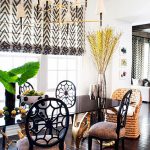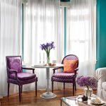 - עדיף להשלים וילונות רב צבעוניים עם דוגמאות קטנות ובינוניות עם טול רגיל ללא דוגמה.