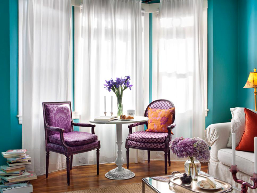 - וילונות וילונות בצבע יחיד חייבים להיות שונים ב -5 גוונים לפחות - אחרת הם יתמזגו.יתר על כן, הווילונות צריכים להיות קלים יותר, כלומר הבד המכסה את החלק המזוגג.