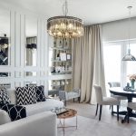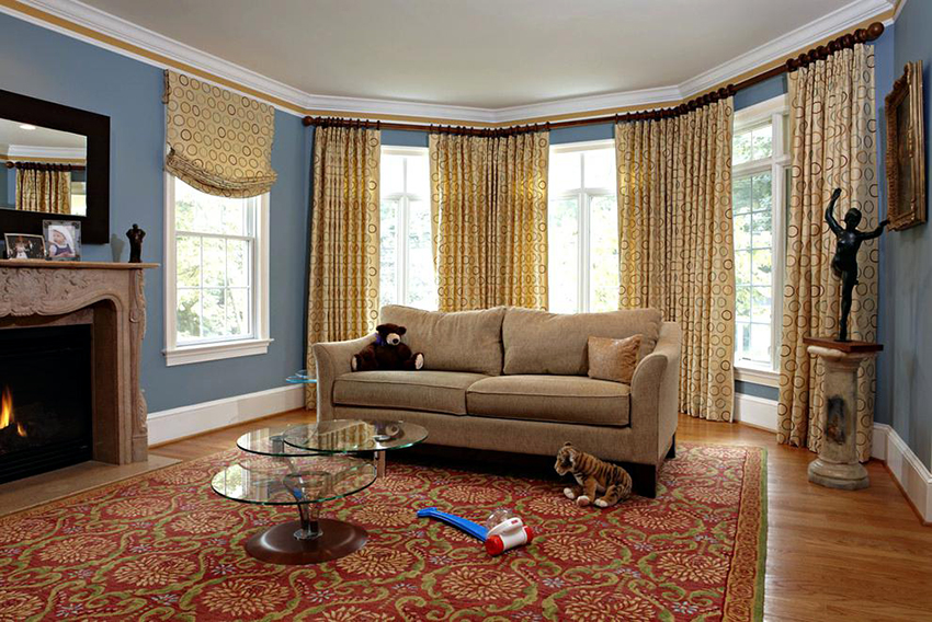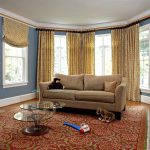 אם יש קירות קטנים בין החלונות, ראוי לסדר את האזור עם שיפון בהיר. את אפשרויות העיצוב המקוריות לווילונות לאולם עם חלון המפרץ ניתן לראות בתצלום באינטרנט. מדובר בשילובי בדים בגוונים שונים, אורכים וצורות לקוניות.