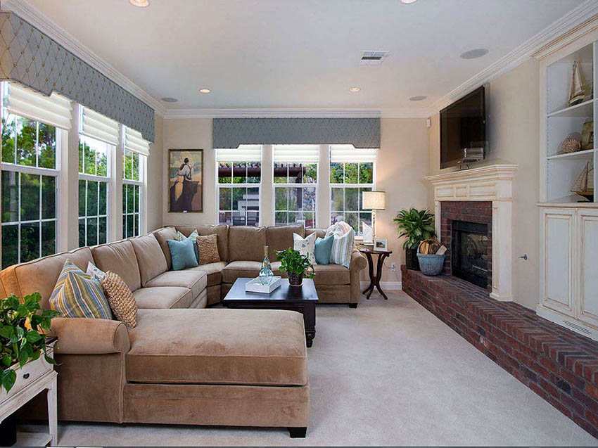 סוג מיוחד של קישוט לווילונות בסגנון קלאסי הוא lambrequins. אלה אלמנטים מבד נוספים שתלויים בחלק העליון. וילונות עם lambrequins לאולם נראים מעניינים ועשירים. ניתן להכין למברינים גם מהבד הראשי (מאותו הווילונות), וגם מאחר, שונה בצבעו ואפילו במרקמו. אלמנט דקורטיבי זה יכול להיות ממוקם לא רק אופקית, אלא גם אנכית.