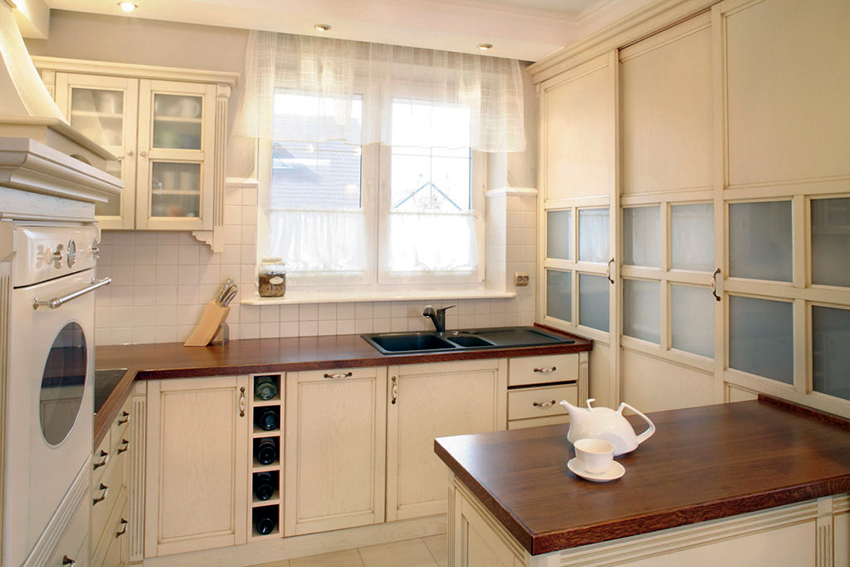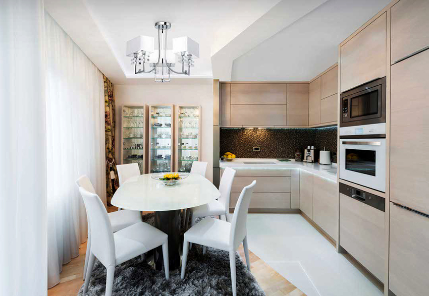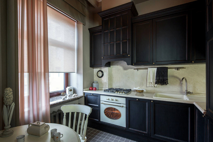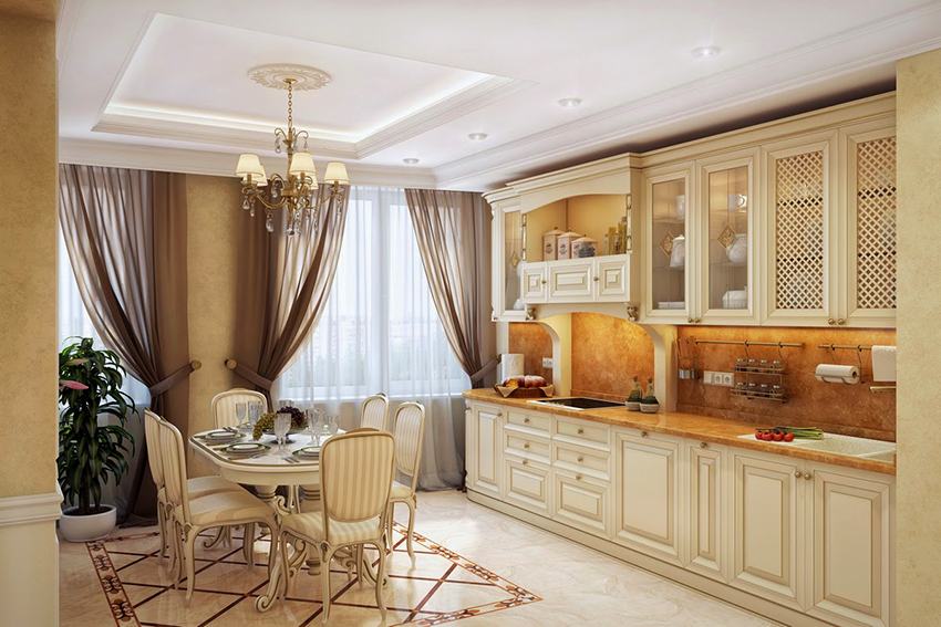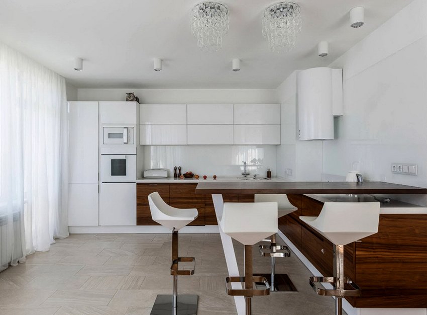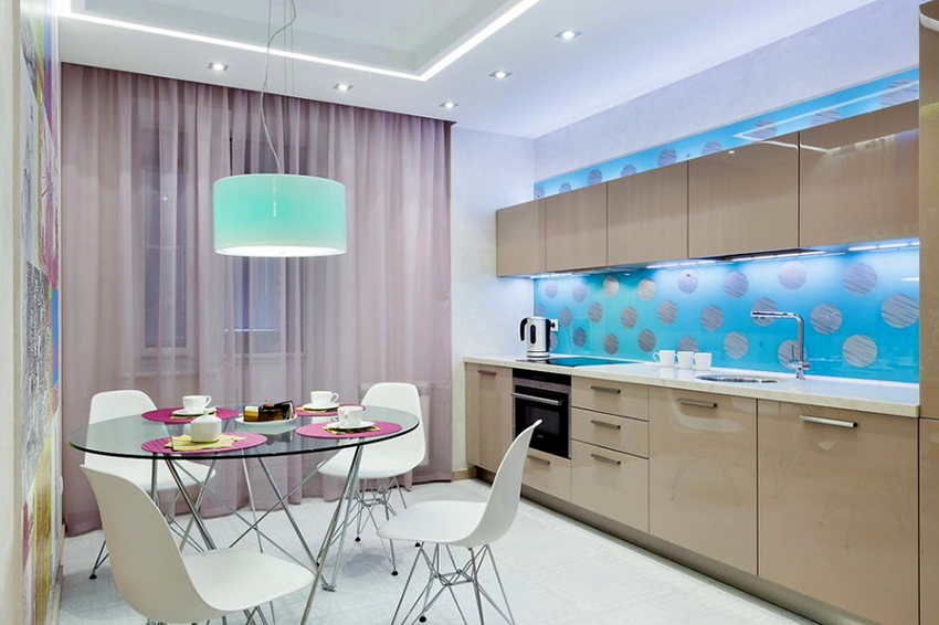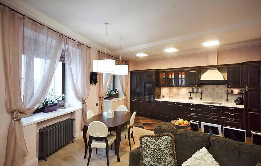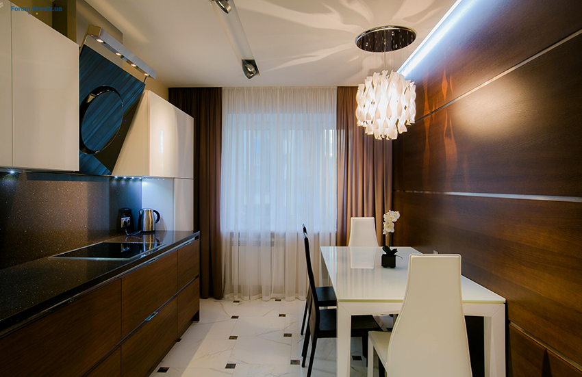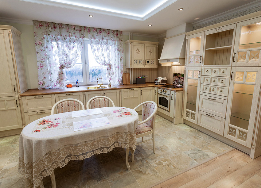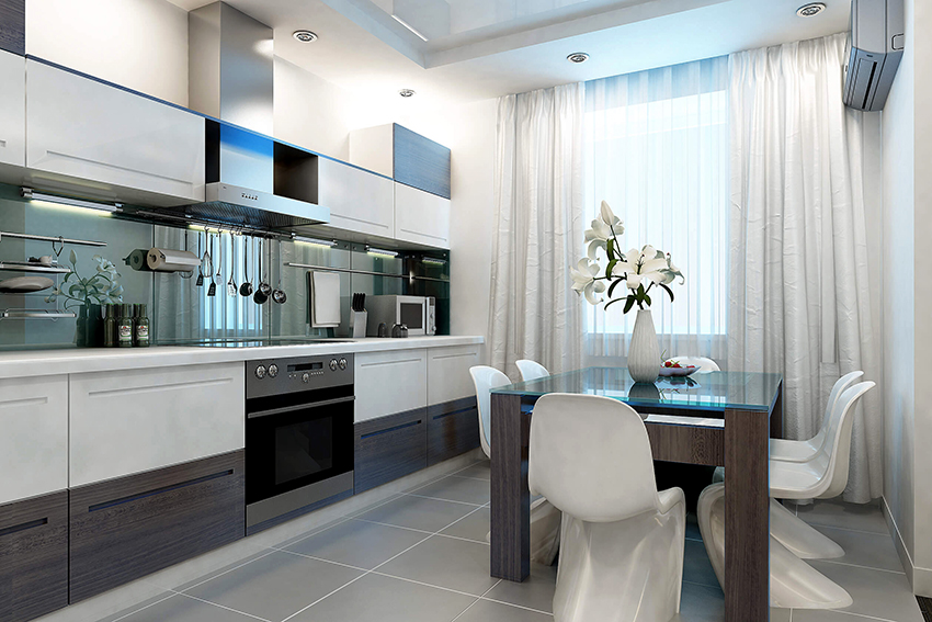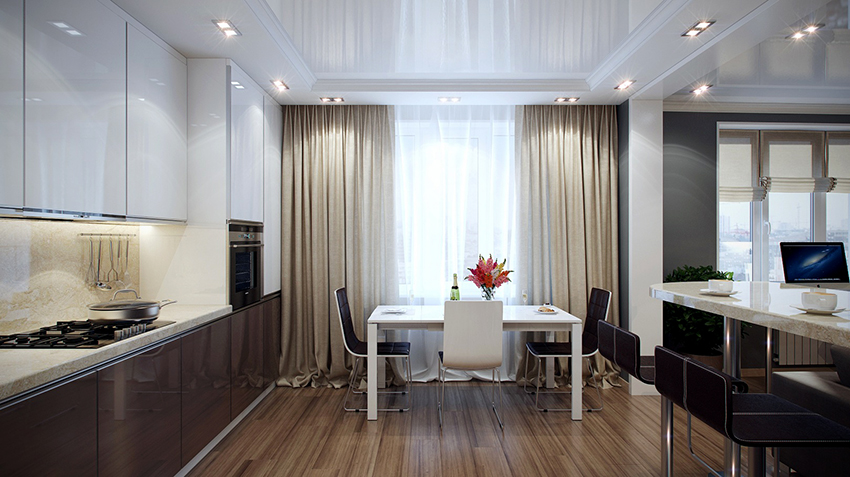- בבחירת האורך, לא רק גובה התקרות נלקח בחשבון, אלא גם הפנים הכללי של המטבח, סידור רהיטים וציוד.
