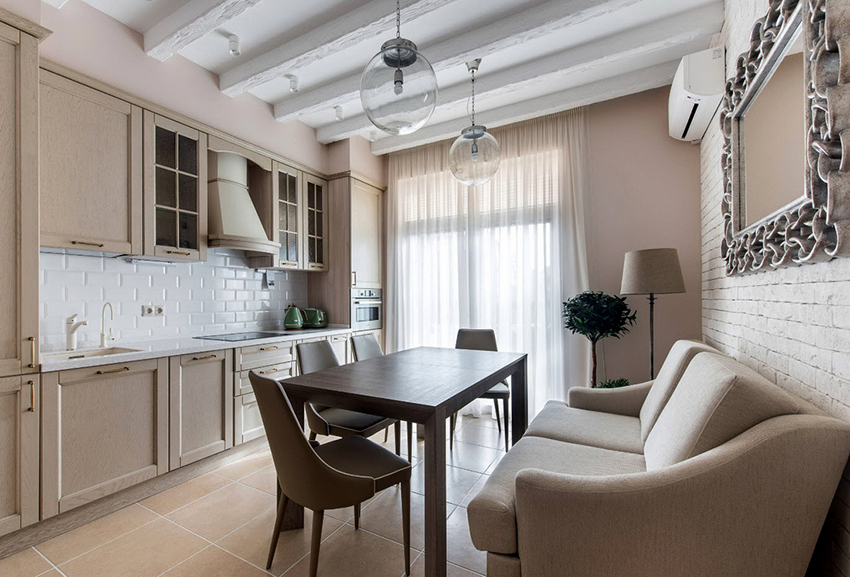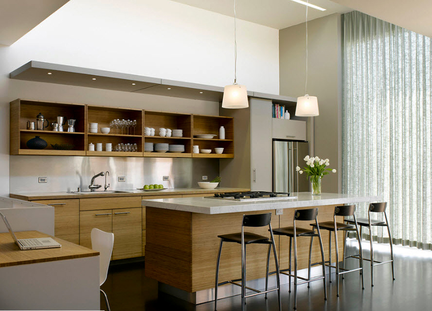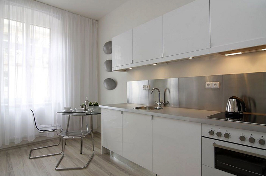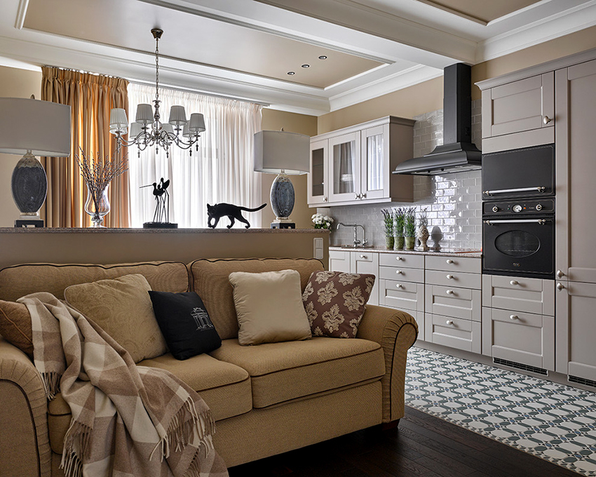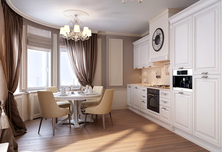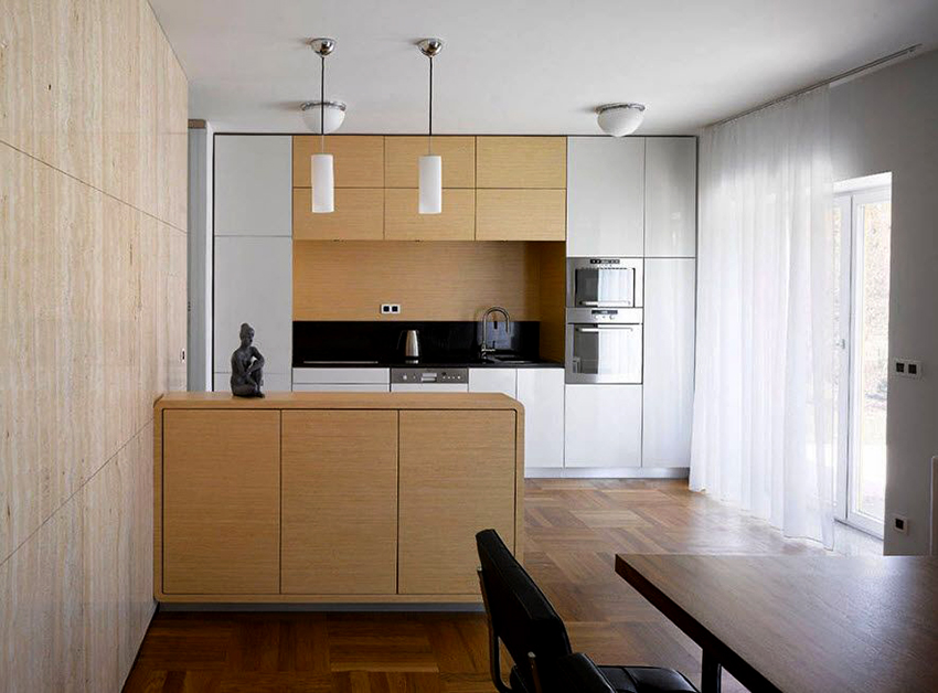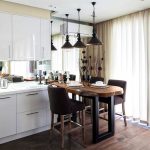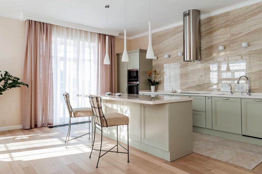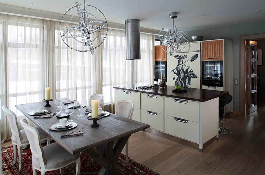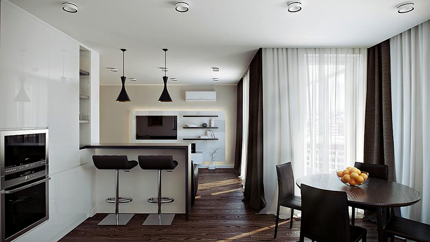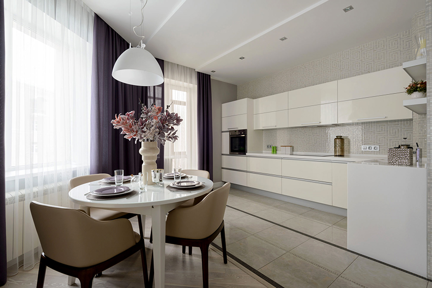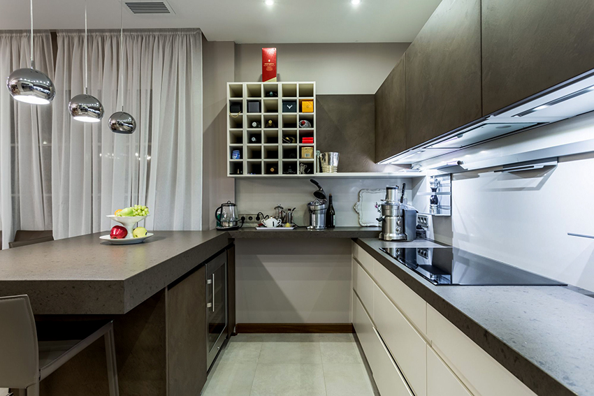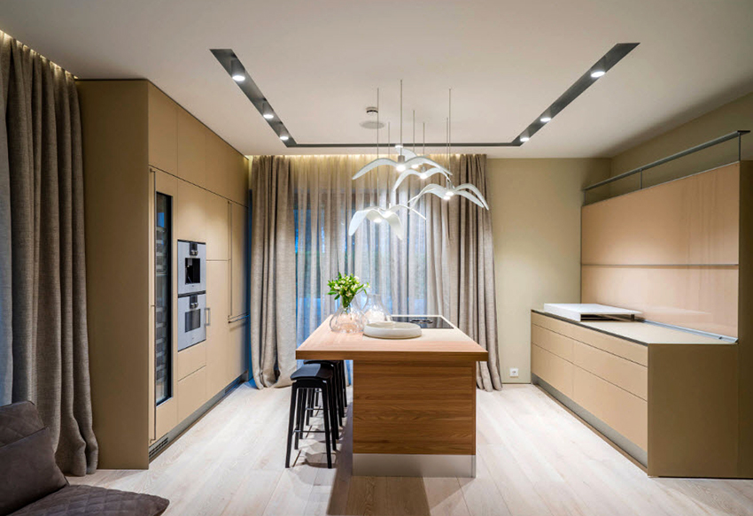 - בבחירת האורך, לא רק גובה התקרות נלקח בחשבון, אלא גם הפנים הכללי של המטבח, סידור רהיטים וציוד.