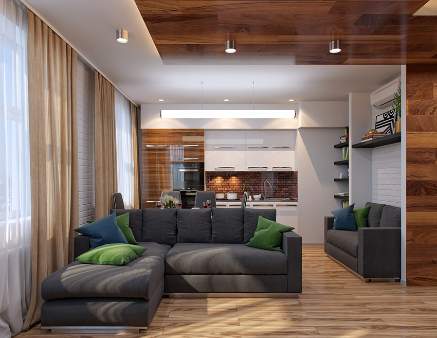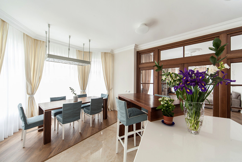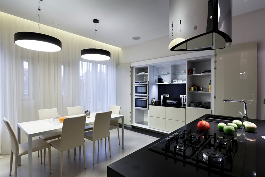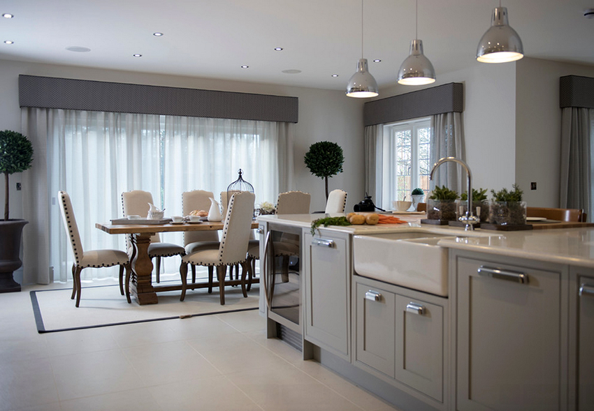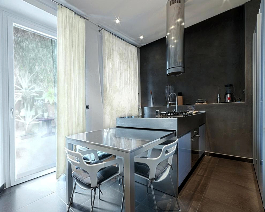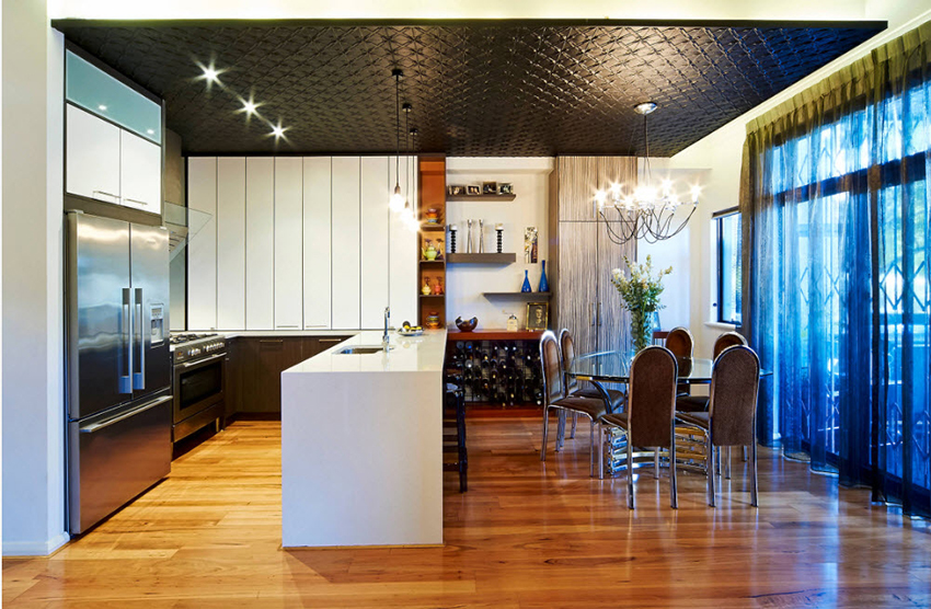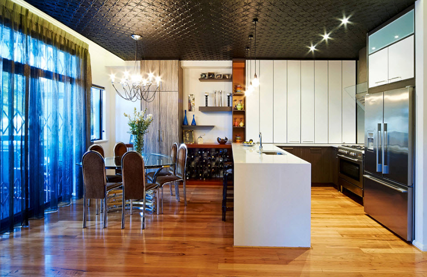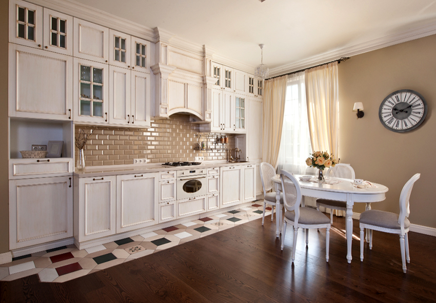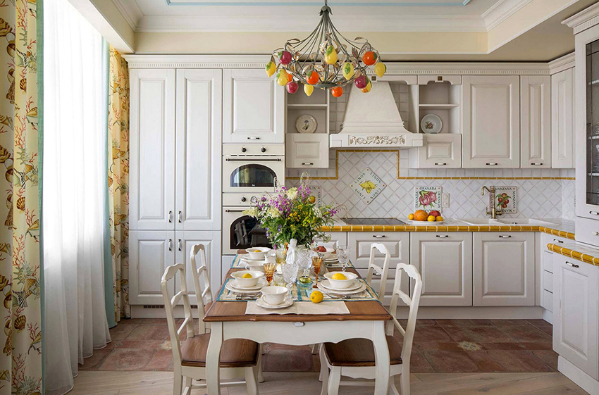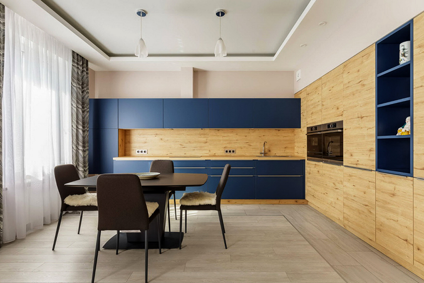 - בבחירת האורך, לא רק גובה התקרות נלקח בחשבון, אלא גם הפנים הכללי של המטבח, סידור רהיטים וציוד.