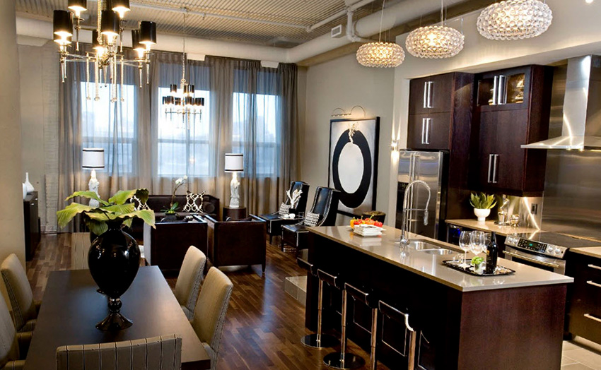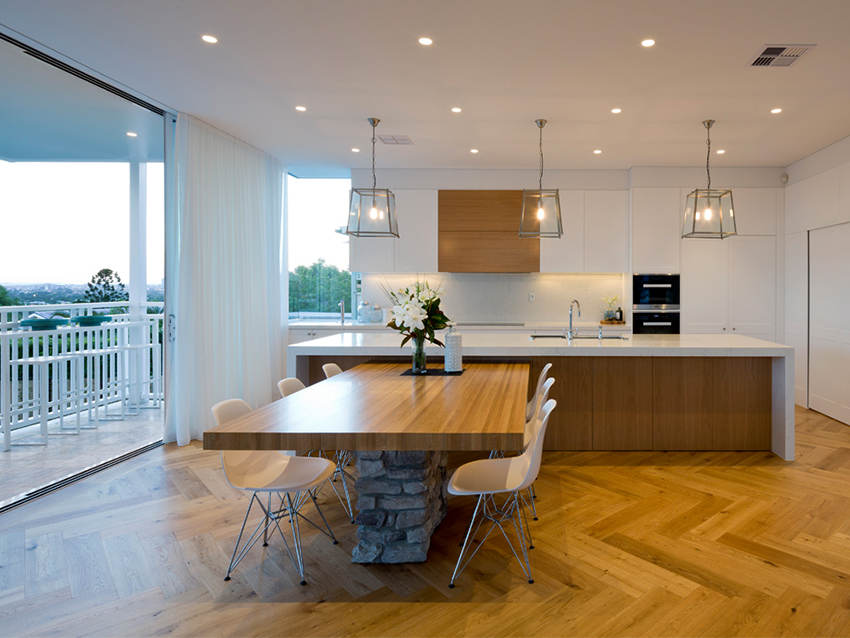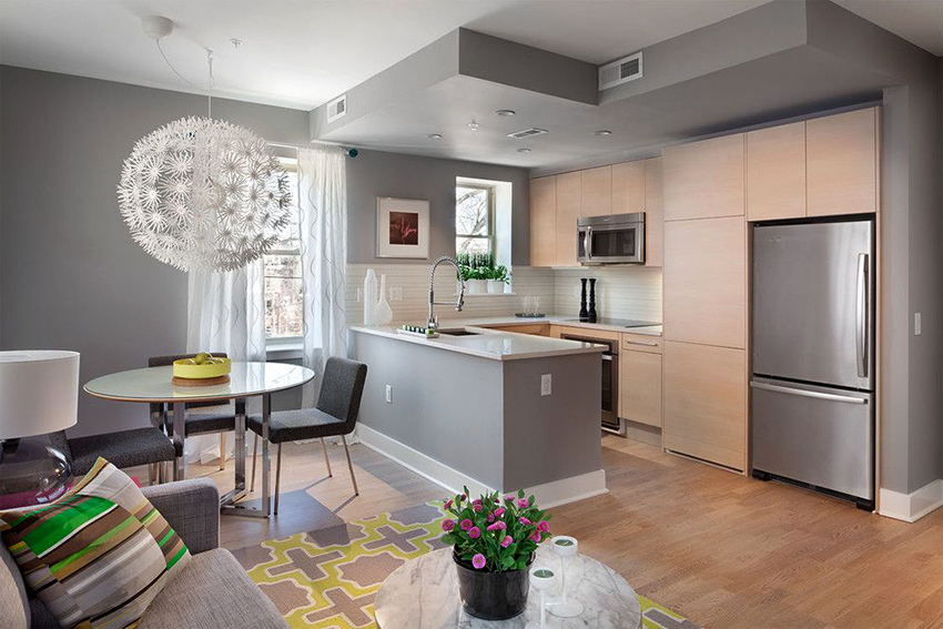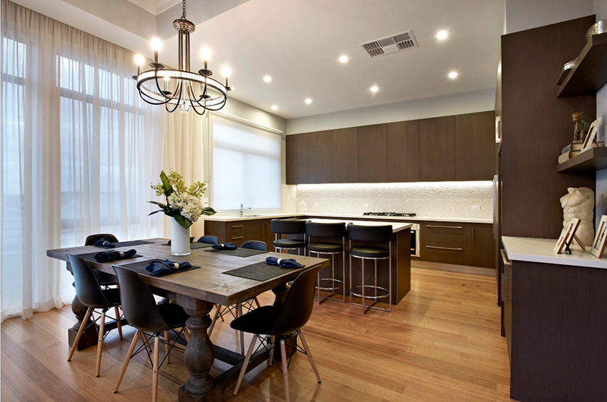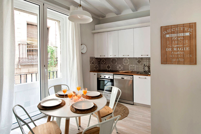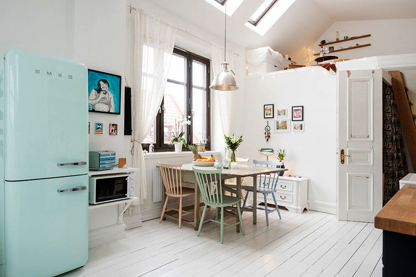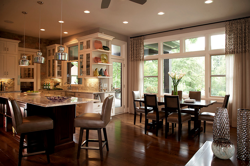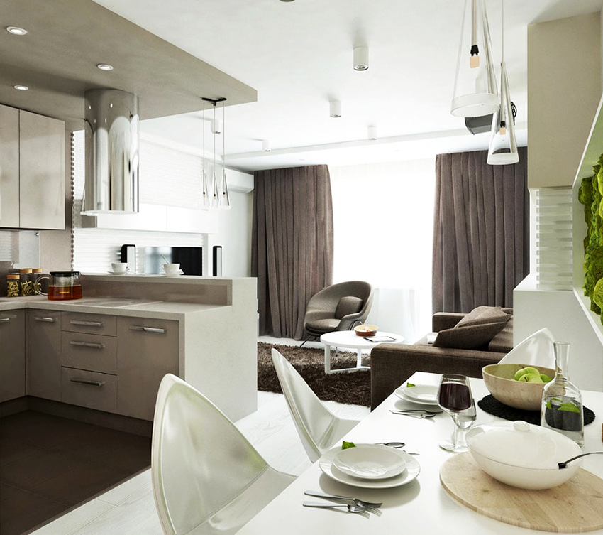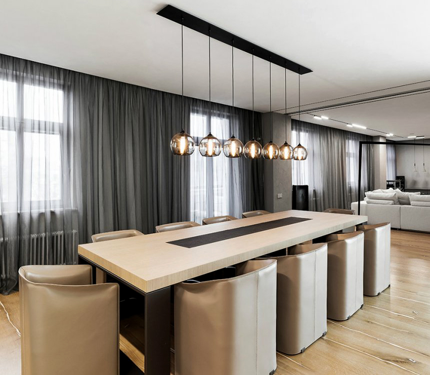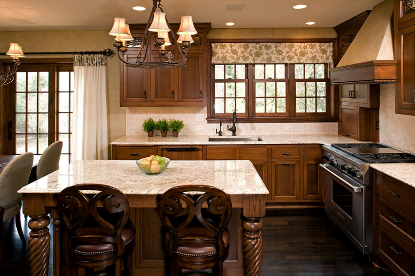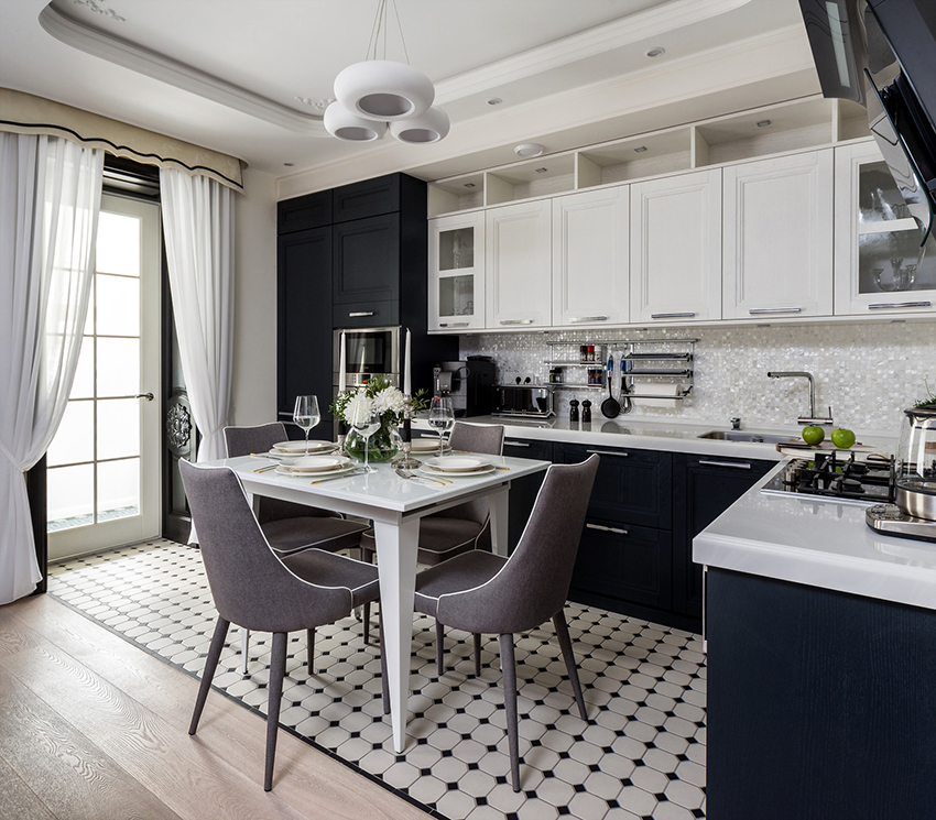 - בבחירת האורך, לא רק גובה התקרות נלקח בחשבון, אלא גם הפנים הכללי של המטבח, סידור רהיטים וציוד.