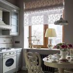 קיסיה-טול במטבח עם למרקין מסוג רך מאפשר לך להפוך את החדר לחגיגי יותר, ואם אתה משתמש בגרסה קשה של הלמברקין, אז נוצרת אווירה קפדנית יותר בחדר. בכל מקרה, לא משנה מהי הגרסה של הלמברקין לקישוט פתח החלון, זה עדיין עוזר להשלים את פנים המטבח. אם אתה ניגש נכון לבחירה של lambrequin, אתה יכול לשנות חזותית את הצורה והפרופורציות של פתח החלון.