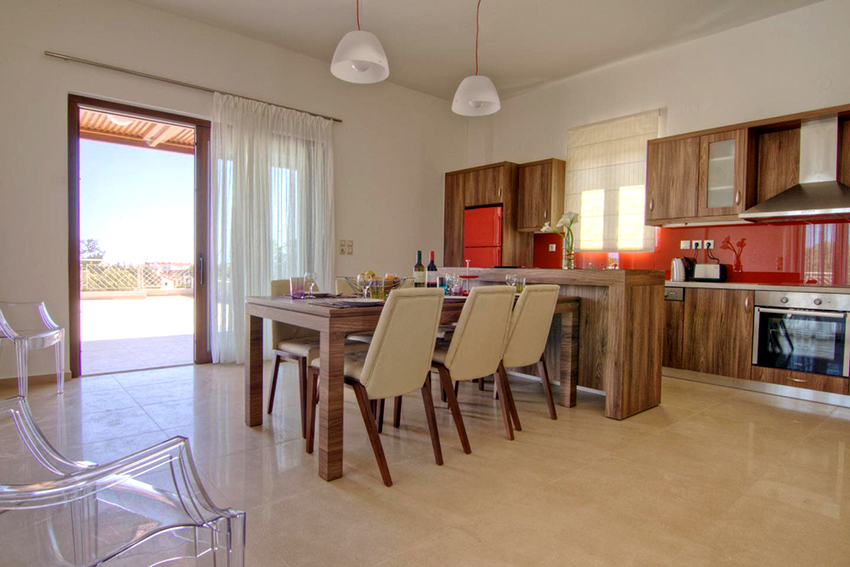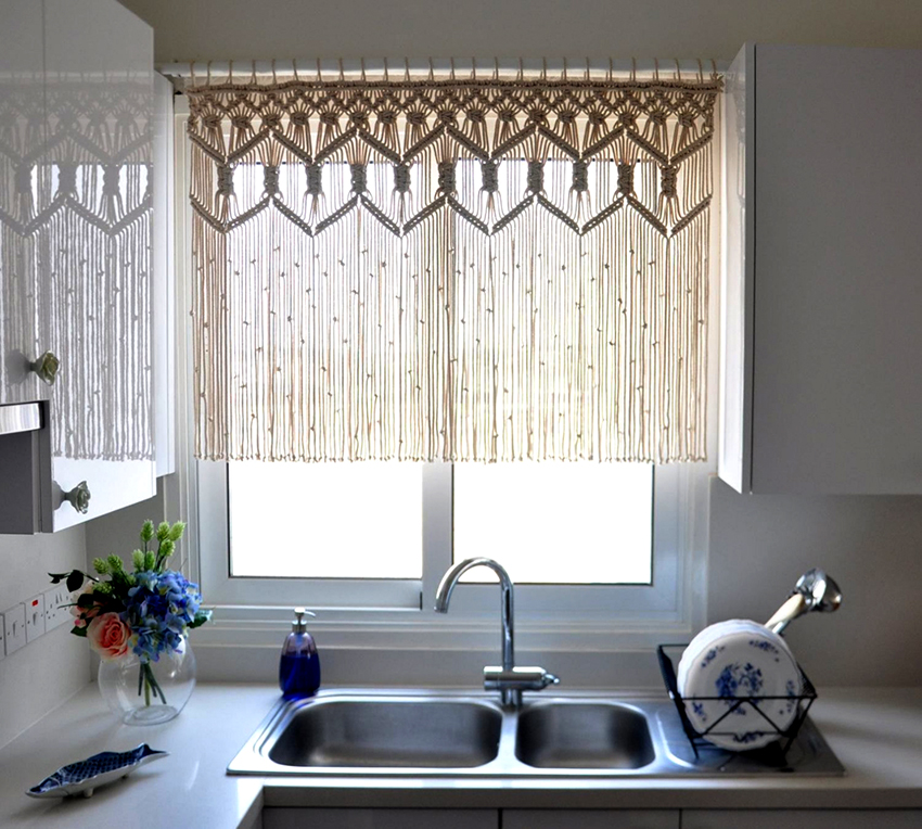 הודות למאפייניו, קל לטפל וקל לכבס. יחד עם זאת, מעצבי החדרים ממליצים יותר ויותר להשתמש בווילונות מקוצרים למטבח שאינם נופלים מתחת לאדן החלון.
