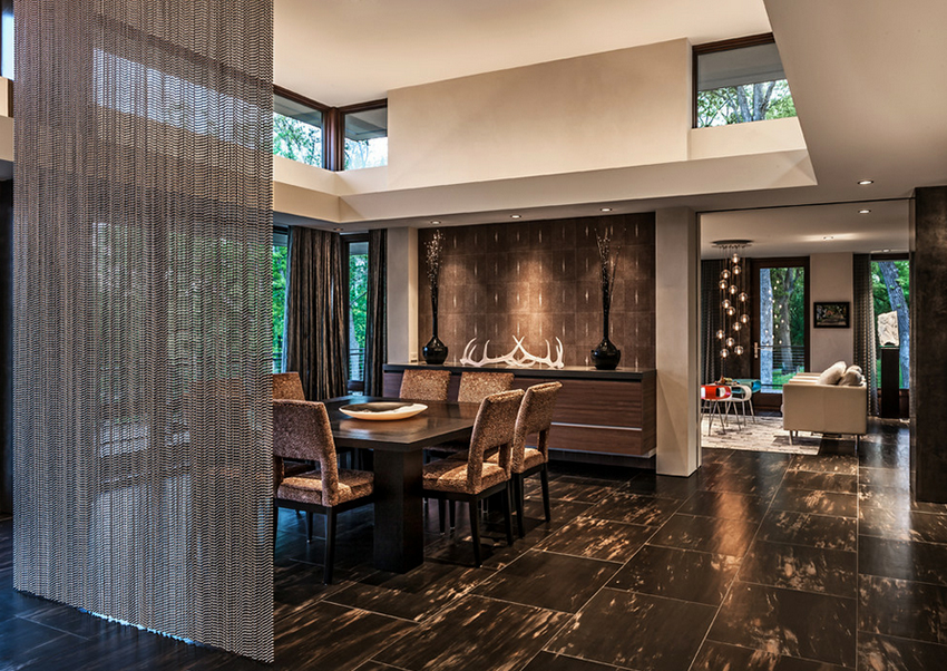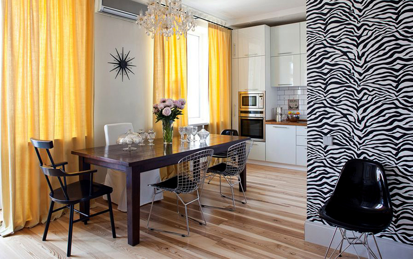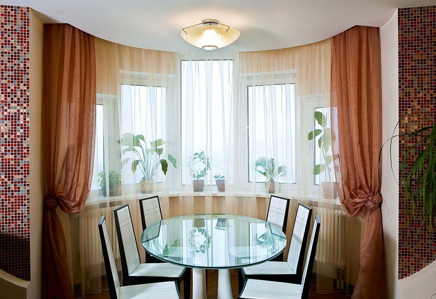 זה מעניין! לעתים קרובות, טול חוט משמש לשטח יעוד. אתה יכול לתלות טול כזה במרפסת, בשילוב עם המטבח, שממלא את התפקיד של פינת אוכל.