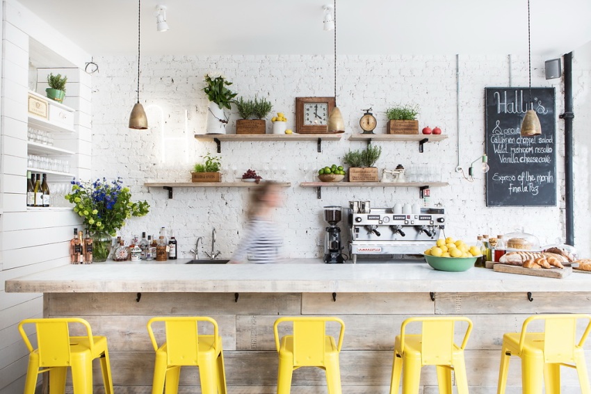 במקרים אלה, עיצוב דומה הוא אידיאלי לריהוט פנים. הקישוט עצמו לא רק נראה מודרני, אלא גם מאפשר לכם להפוך את האווירה של מוסד ציבורי לחמימה ונוחה.
