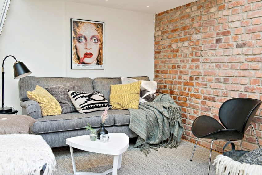 עצה מועילה! השילוב הטוב ביותר מתקבל באמצעות טפט דמוי לבנים בשילוב עץ או אבן דקורטיבית.