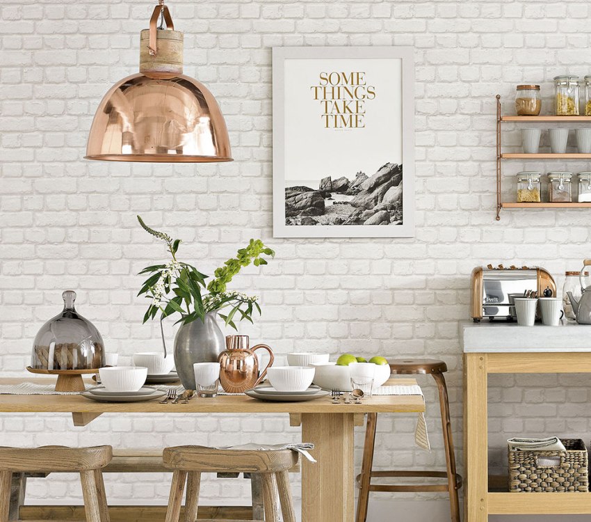 הדפסת לבנים על טפטים היא פיתרון רב-תכליתי, כך שהיא יכולה לשמש קישוט קיר דקורטיבי בכל חדר. יתר על כן, חומר זה משולב באופן מושלם עם גימורים אחרים.
