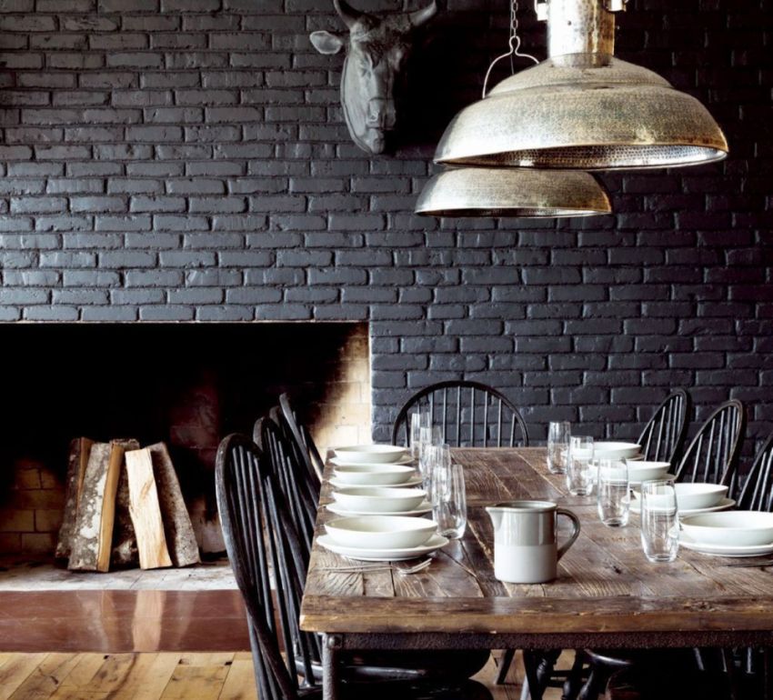 - טפטים דמויי לבנים בצבעים בהירים משולבים בגימורים כהים.