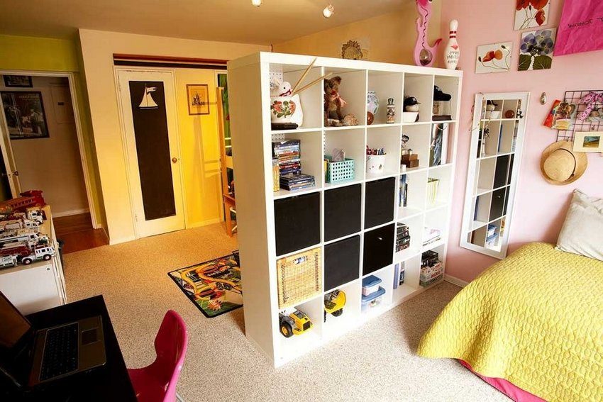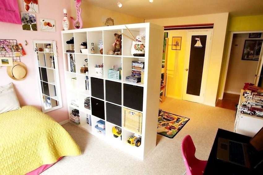 המחיצה יכולה להיות כלי נוח לארגון פינת ילדים.כך, בחדר השינה של ההורה תוכלו לתחום את האזור למבוגרים וילדים. הילד יקבל מקום משלו למשחקים, בעוד שהוא תמיד יישאר בפיקוח הוריו. האופציה האידיאלית היא מתלה עם דלתות שניתן לפתוח לשני הכיוונים.
